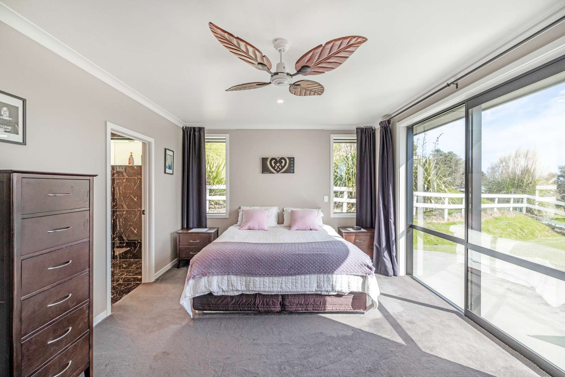 The master bedroom is a true retreat, boasting a spacious ensuite and private access to the outdoors, where you can soak in the peaceful rural surroundings. Ceiling fans in all three bedrooms provide extra comfort, and the beautiful tiling in the bathrooms adds a touch of luxury to this already exquisite home.