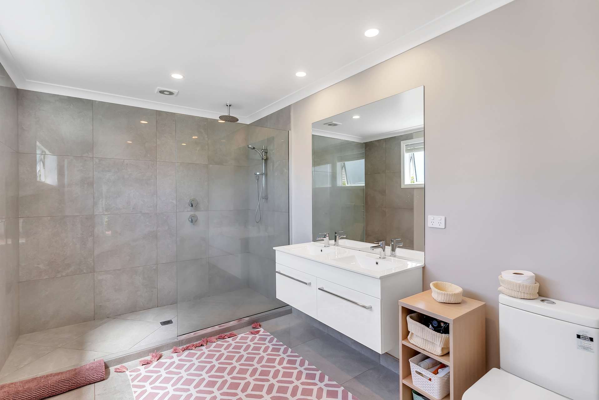 Four generous double bedrooms cater to families of all sizes, with the front bedroom doubling as an ideal office space. The master suite is a standout, complete with a beautifully tiled ensuite featuring double basins, a walk-in wardrobe, and sliders opening to the tranquil back garden. The main family bathroom offers a luxurious freestanding bath and an adjacent guest WC adds convenience for visitors. And solar panels help with those electricity bills!