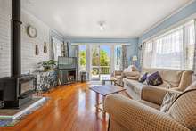 The lounge is light and bright, with French doors leading onto the front deck – a perfect spot to enjoy your morning or afternoon coffee. For those cooler nights, the spacious lounge also features a wood burner to keep you cozy.