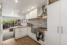 The open-plan configuration creates an inviting atmosphere for spending time with friends or flatmates. It's warm and welcoming with a heat pump for year round comfort with a double glazed slider to the garden as well! It offers seamless indoor outdoor flow, taking you out to a compact deck and private courtyard where you can relax and unwind in your own slice of paradise.