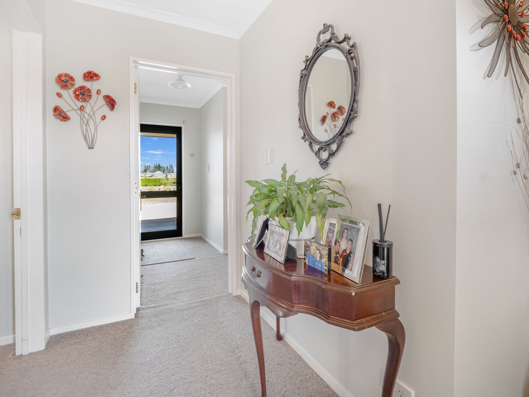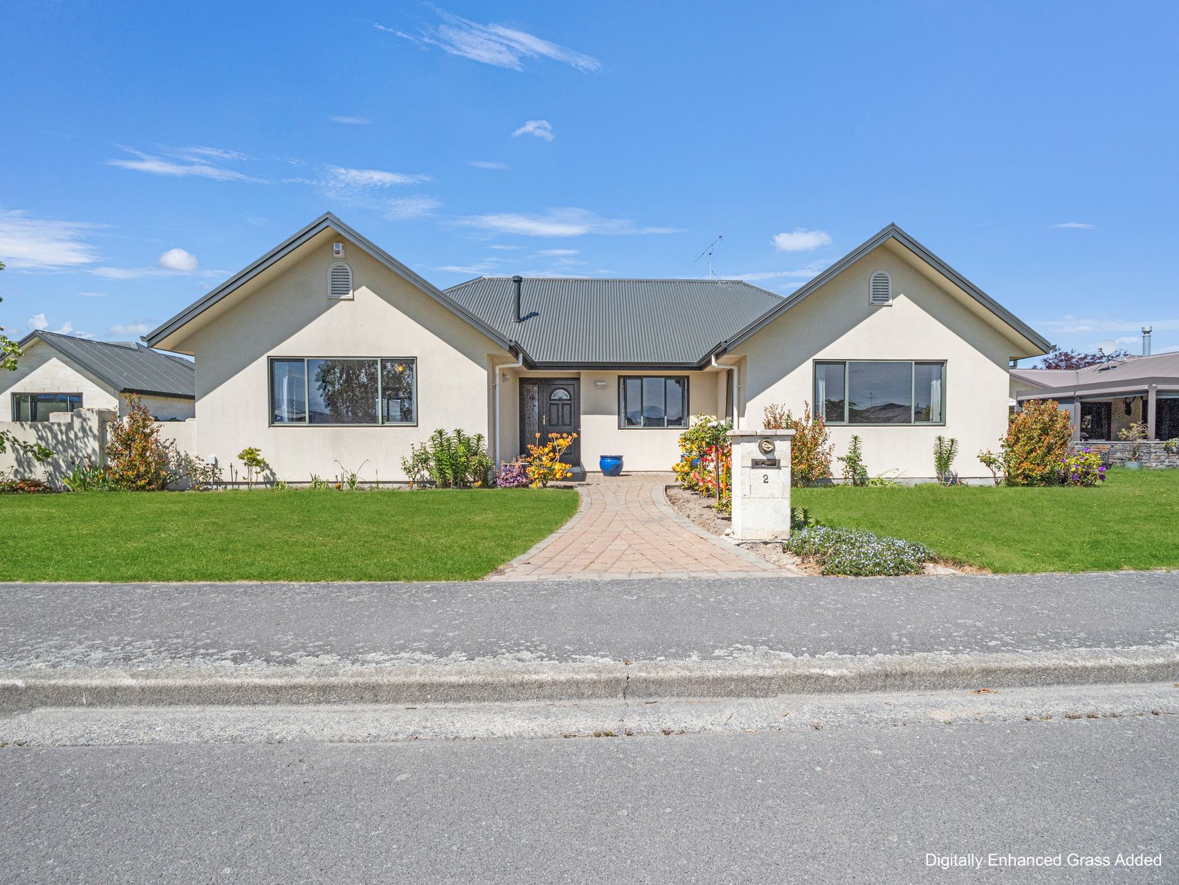 Outdoors, manicured lawns and colourful borders frame the home, with paved areas that invite morning coffee or evening chats with neighbours.