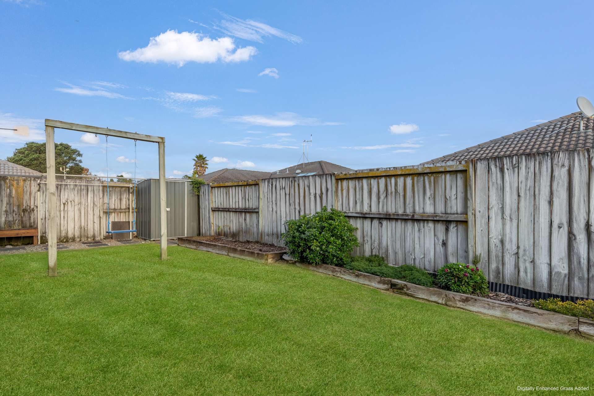 Step outside to a generous decked area – perfect for morning coffees or evening entertaining. The secure backyard offers ample room for kids and pets to play, with a swing and garden space adding to the charm. Double garaging and additional off-street parking complete the picture.