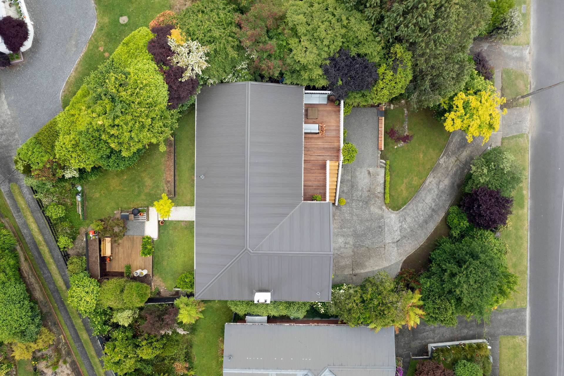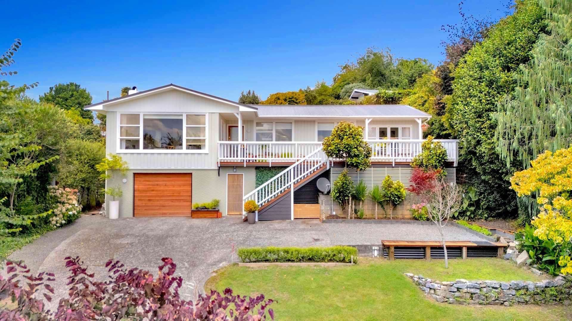 Privately nestled in a sun-drenched, north-facing setting, the home enjoys elevated views across Taumarunui’s rolling countryside. Woodland-style steps rise gently from the street, guiding you through native plantings to a home that feels both grounded and serene.