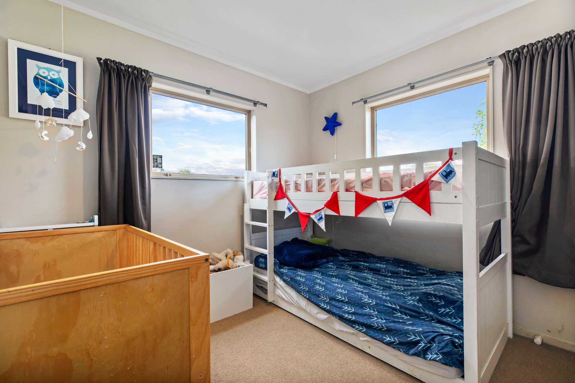 A classic floorplan, both well sized bedrooms come off the hallway, along with the family bathroom which has a shower over the tub and toilet. The bedrooms both have built in wardrobes and feel like a calm and peaceful retreat.