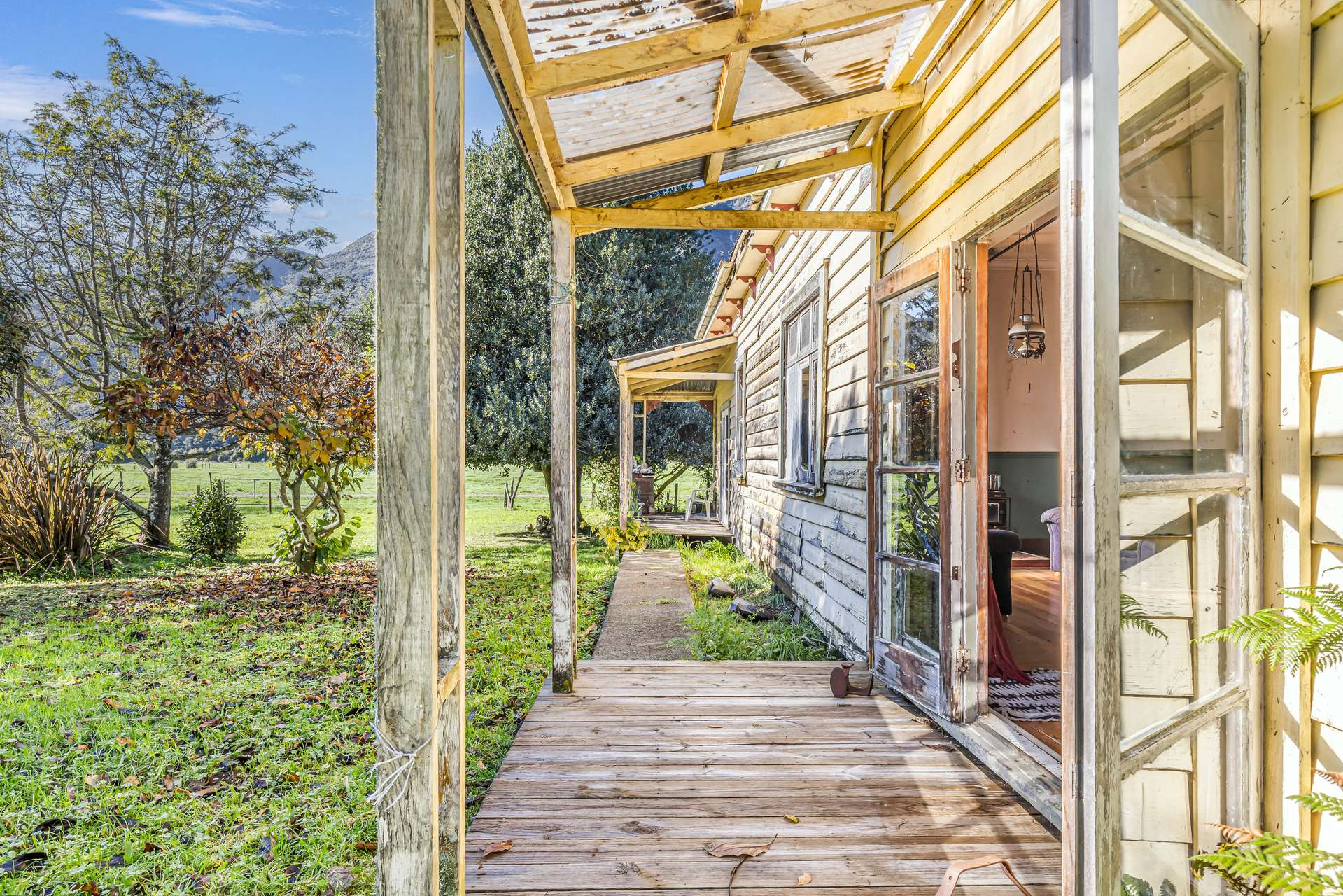 Framed by mountain views and rural quiet, the existing home is honest and full of heart, a classic weatherboard build with solid bones and space to spare. Inside, the layout is simple and functional: a long hallway runs through the centre, with all four bedrooms tucked neatly at the back. One of these opens directly onto a sunny deck, while another could be easily transformed into a home office, creative nook or guest space.