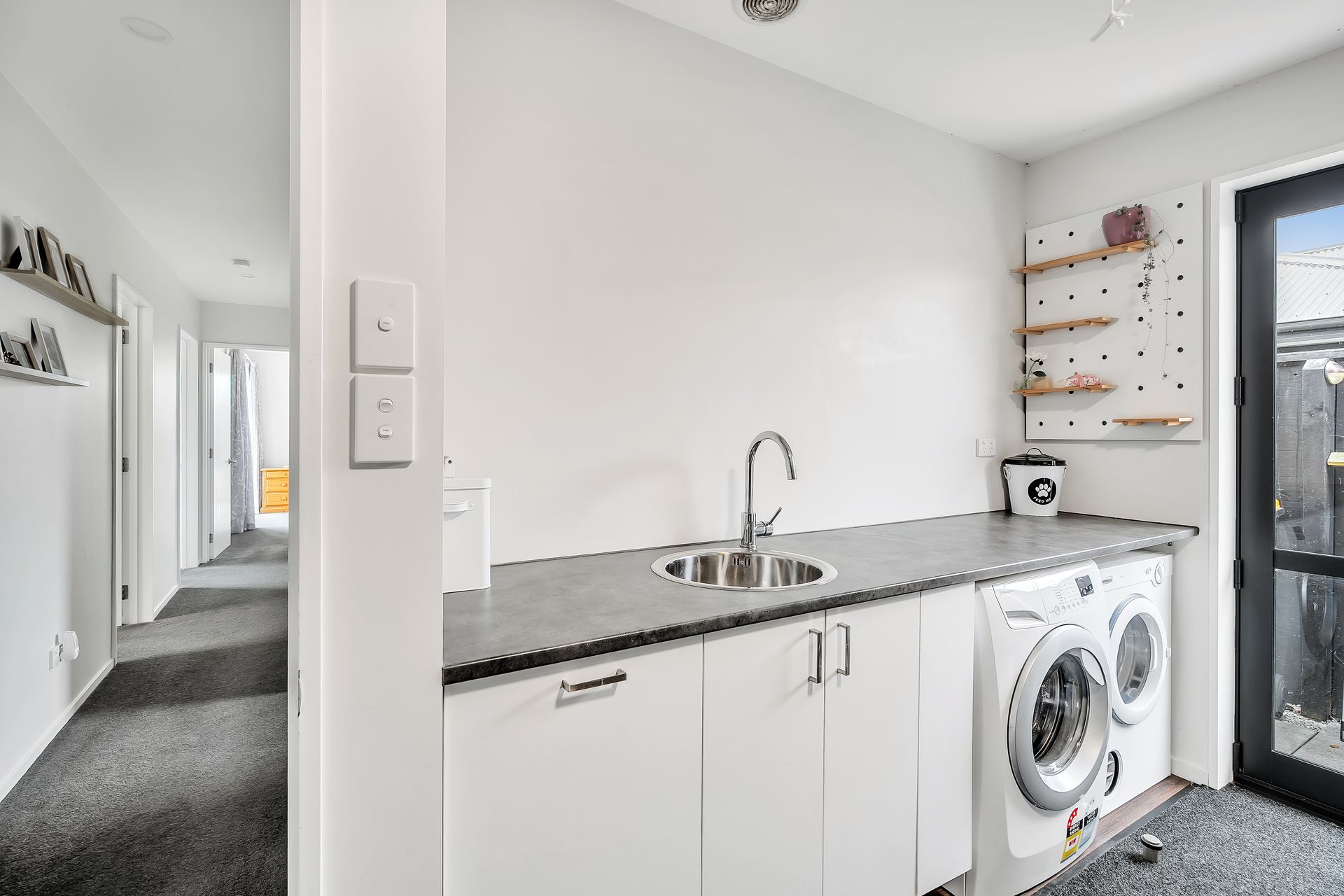 The fully fenced 399sqm section has been designed for easy care, with a tidy lawn, established boundary planting and a private patio that provides an extra outdoor living space. It’s a practical setup for kids, pets or anyone wanting some outdoor area without a lot of maintenance. Internal-access garaging with attic storage and driveway parking add to the convenience.
