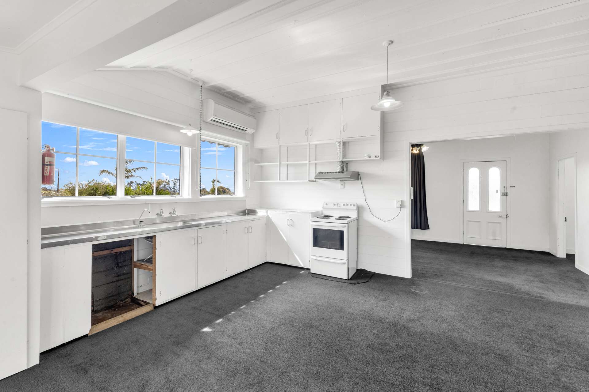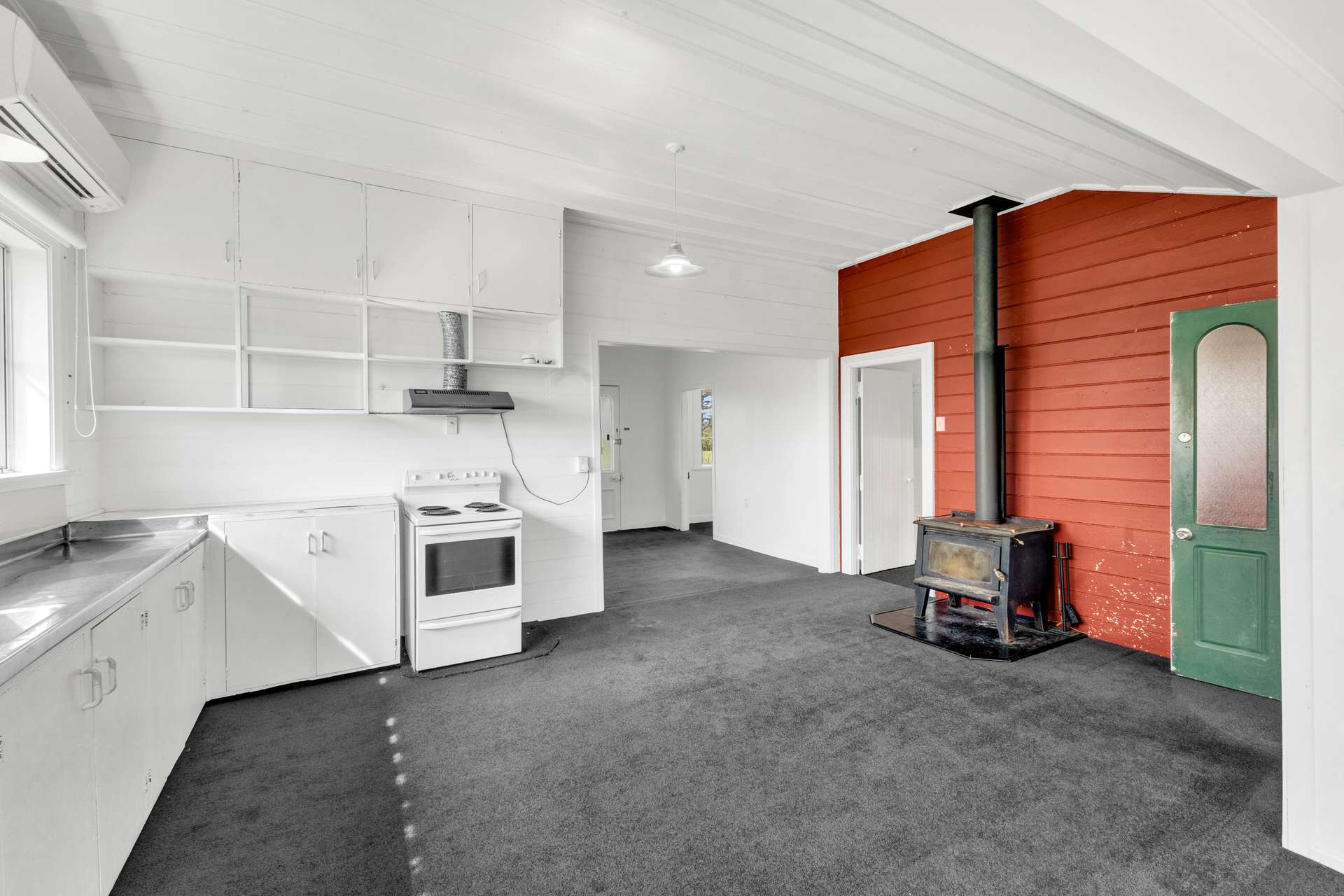 Offering both open plan living and a sense of connectivity, with refreshed original features, bold black floors, fresh neutral walls and high ceilings. Throw open the fantastic French doors, step out to your deck and savor your rural views with family and friends! Winter is sorted too with both a wood burner and heat pump to keep you toasty warm.