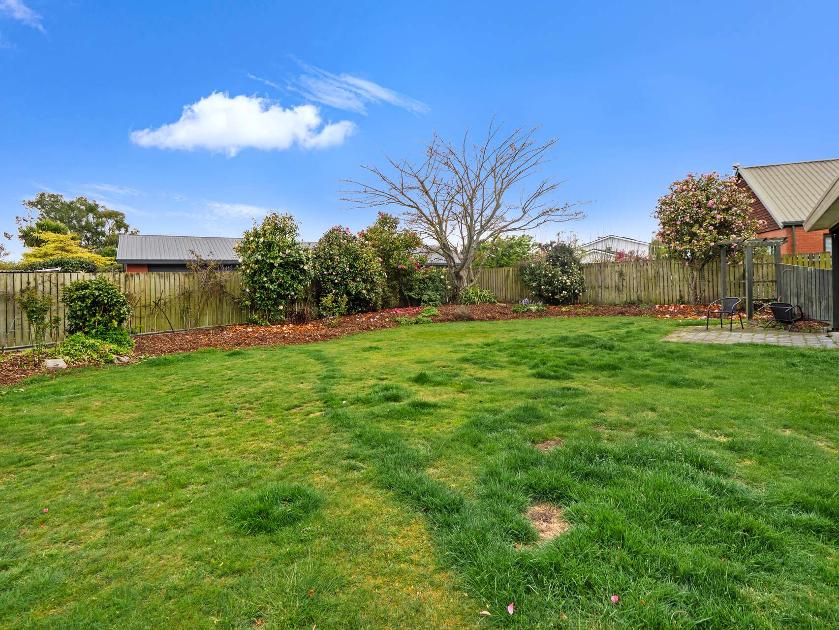 Outdoors, the setting is calm and cultivated: manicured lawn, mulched beds and mature deciduous shrubs. Full fencing adds privacy and peace of mind. There’s ample room for backyard play, raised vege beds, or long lunches against the mountain backdrop.