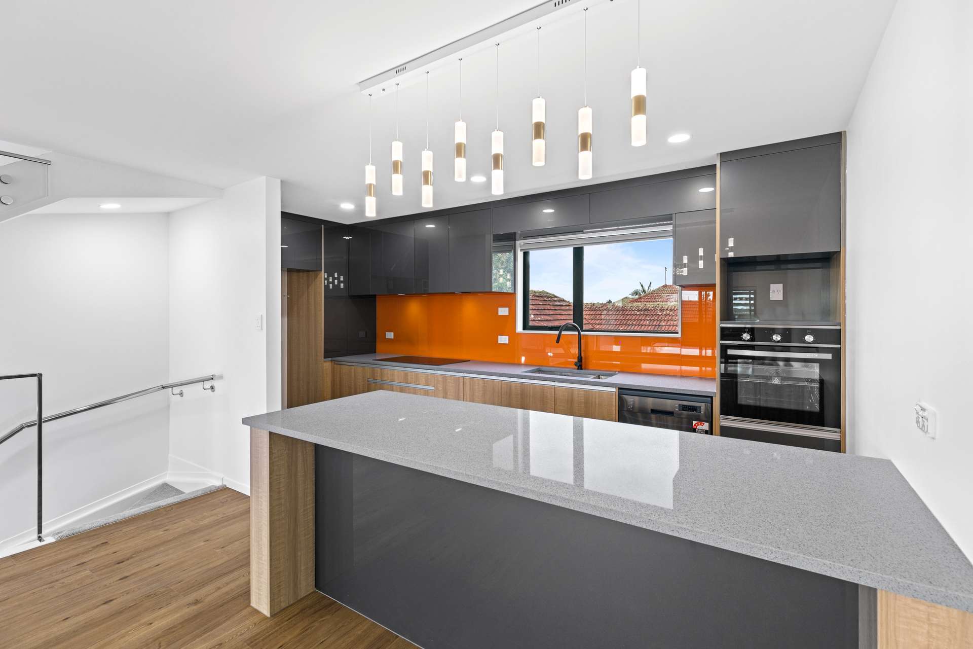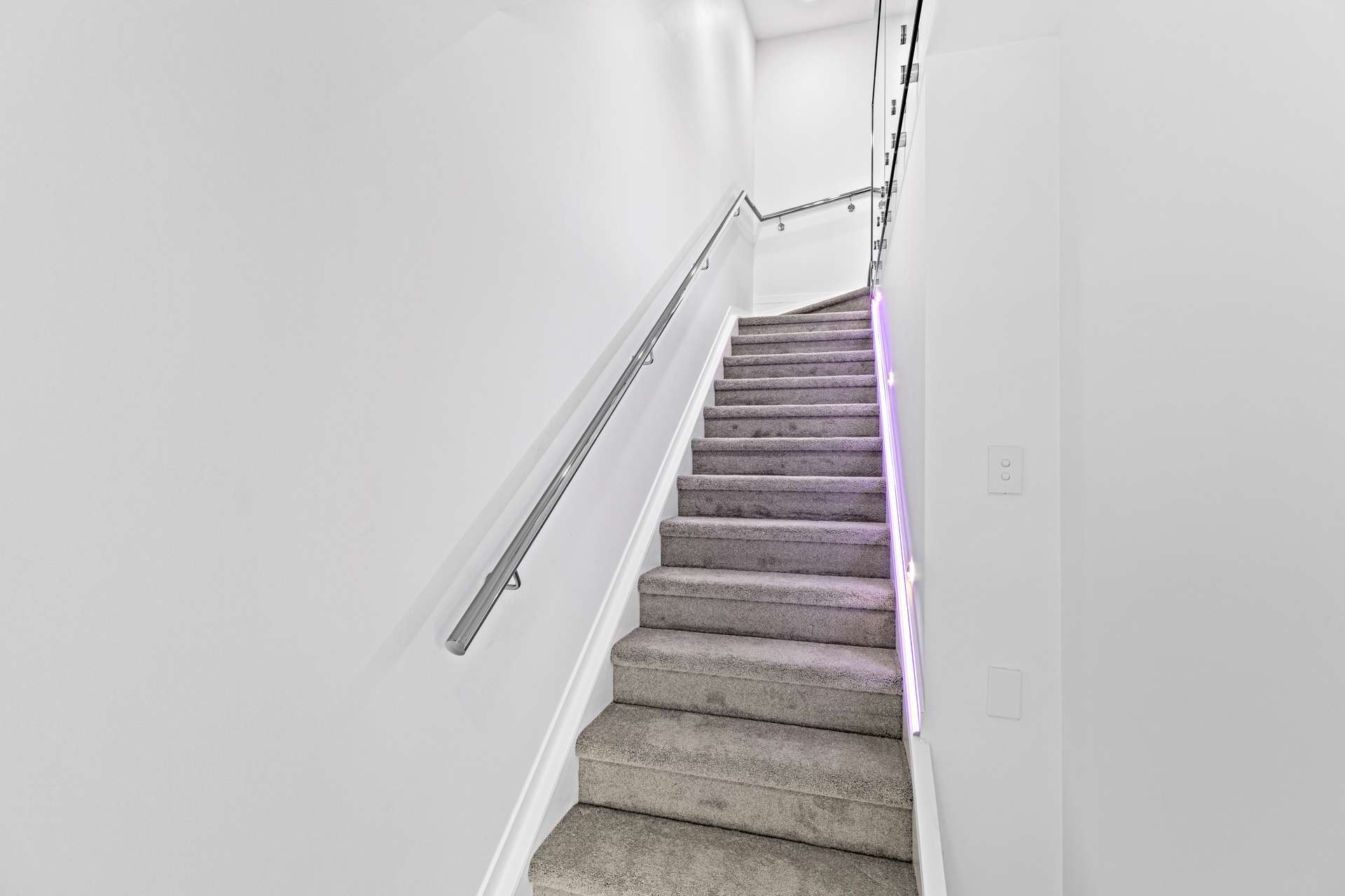 The middle level is an entertainer’s dream, with a contemporary open-plan kitchen featuring expansive breakfast bar, glass splashback, under cabinet lighting and all the modern appliances you would expect. Exuding style and space the living enjoys smooth indoor/outdoor flow through sliding doors to a generous balcony; extending the living spaces and filling it with natural light. The vendor has invested in superior fixtures and fittings to ensure quality and style.