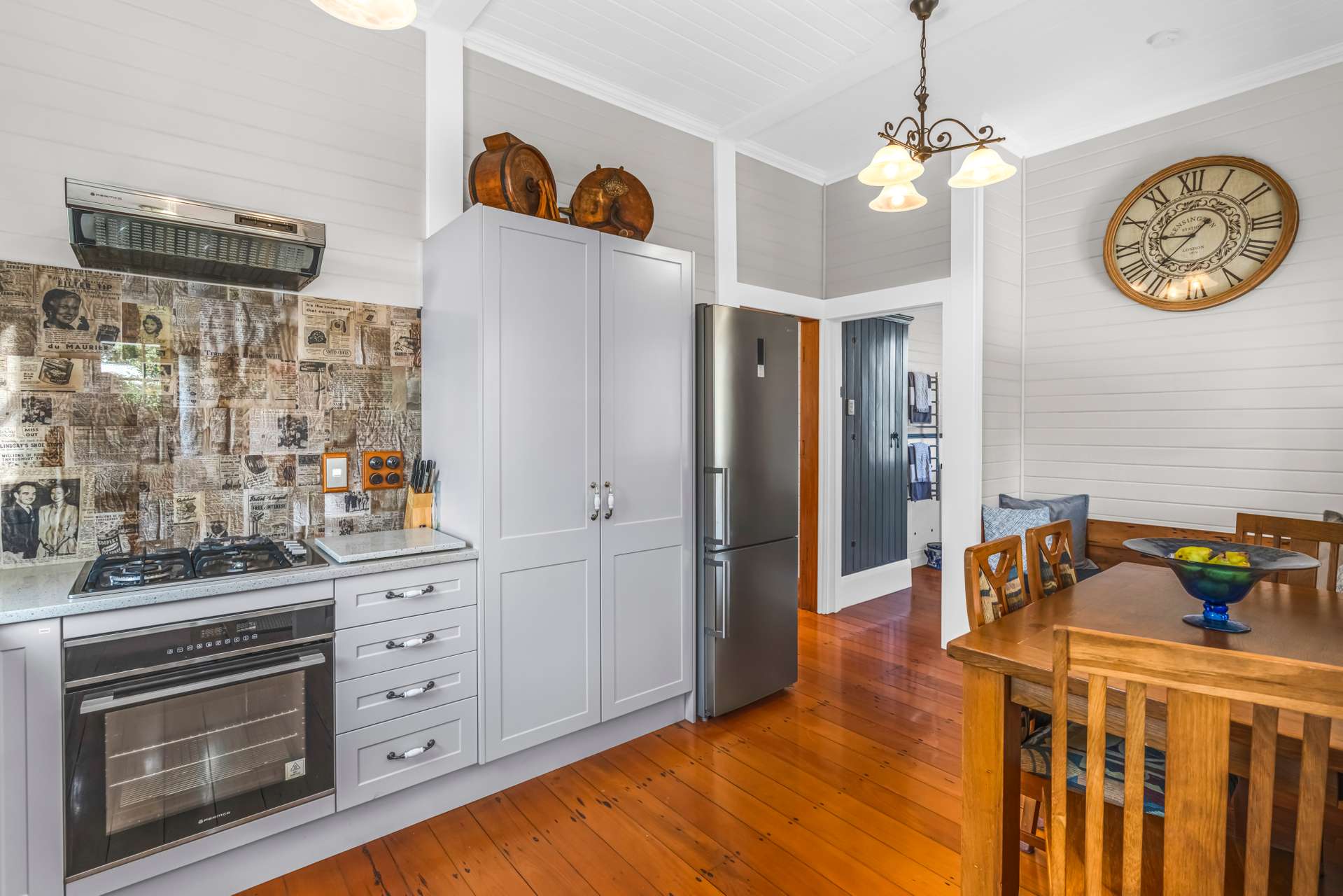 The elegant three-bedroom layout features a custom leadlight hall, original fireplaces, and a lounge opening onto sun-soaked decks. Unique details inbound, including a kitchen splashback crafted from a 1956 newspaper.