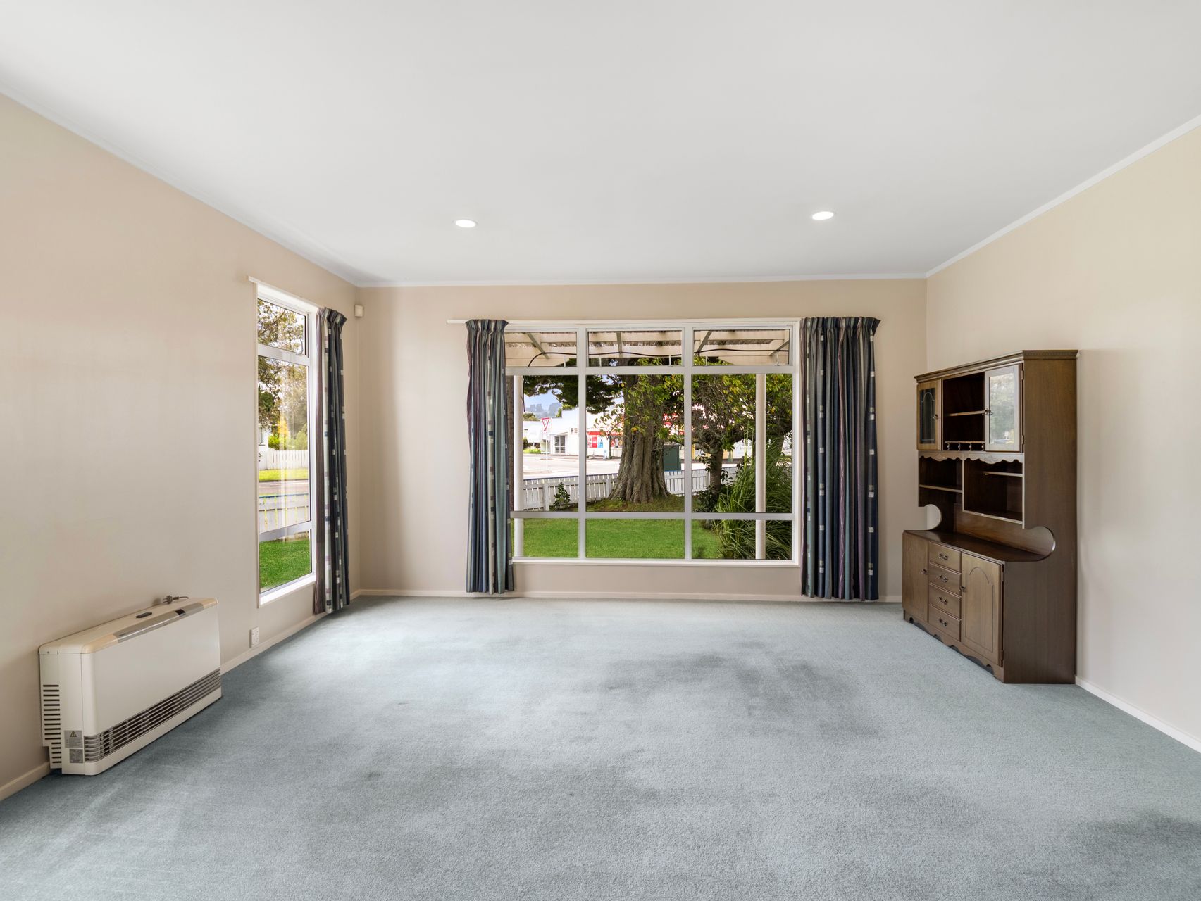 Inside, the living room is generous and sun-washed, framed by large picture windows that draw in natural light and garden views. It’s a comfortable setting for everyday living, kept cosy with heating in place for cooler months. The open-plan kitchen, dining area is positioned separately, offering a practical, well-designed interior with excellent storage and plenty of bench space. There’s scope here to personalise and add value over time - update at your pace while enjoying a layout that already works.