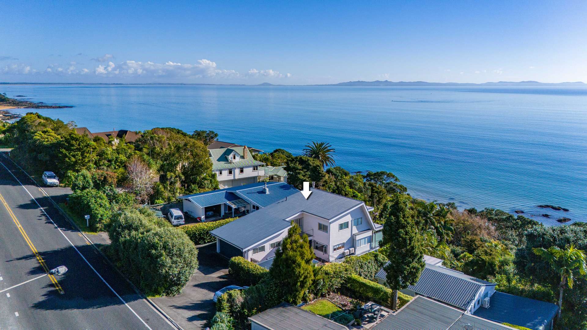 Perched just above the shoreline in sought-after Cable Bay, this exceptional coastal residence offers a rare blend of contemporary luxury, architectural flair, and relaxed waterfront living. Set on a 981sqm seafront site with sweeping views across Doubtless Bay, the property delivers privacy, style & versatility in one of Northland’s most coveted enclaves.