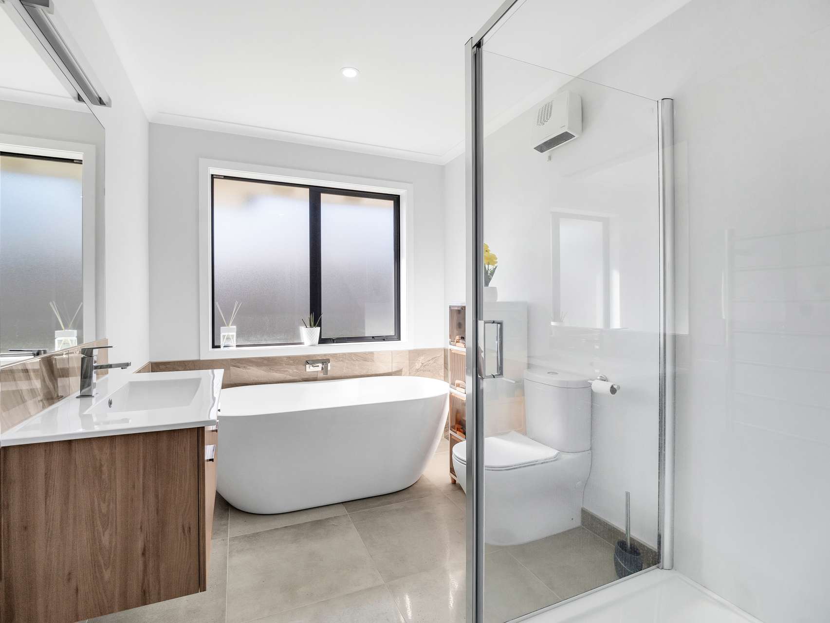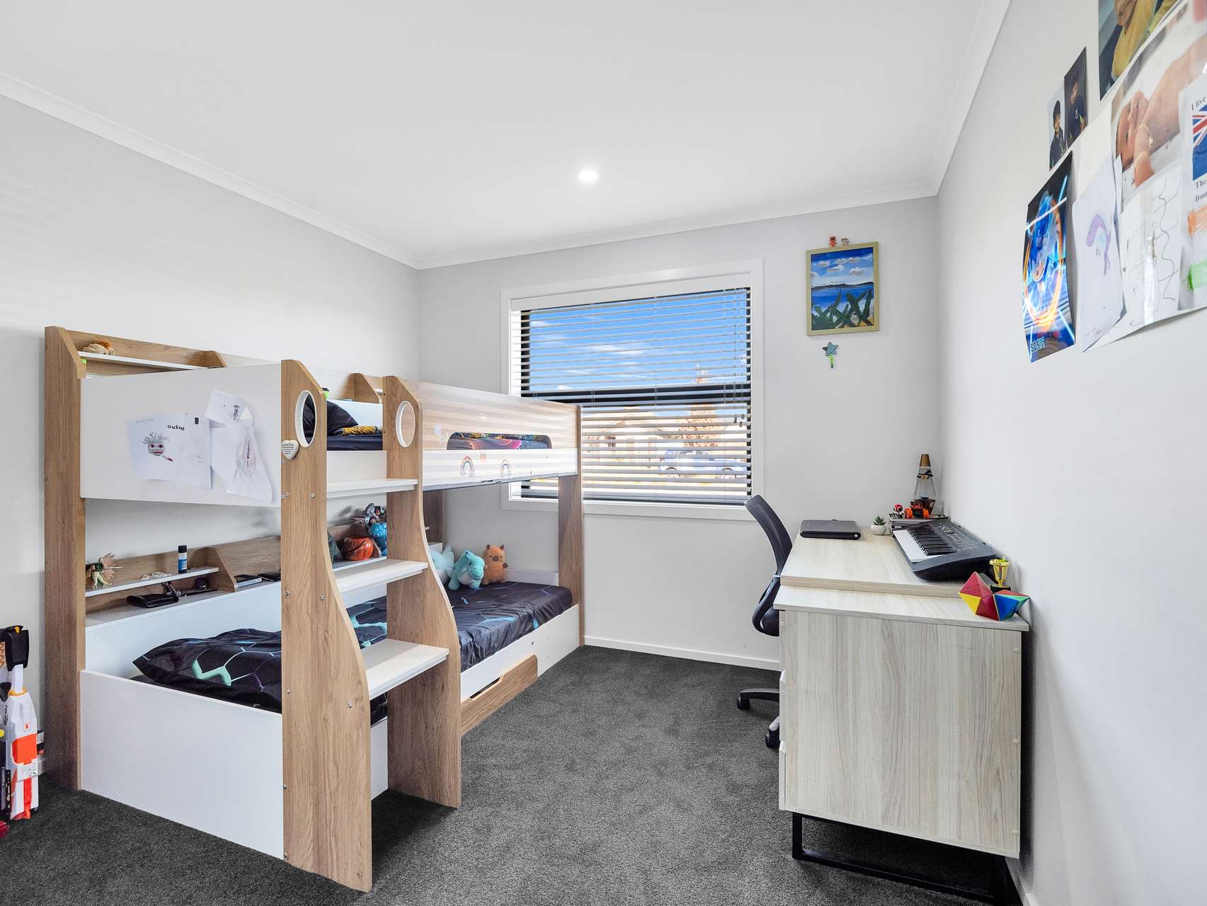 The primary suite is a genuine retreat with its own ensuite, walk in robe and garden outlook. While the remaining bedrooms are equally well-proportioned, ideal for children, visiting guests, or even that home office you’ve been promising yourself. The family bathroom has a stand-alone tub and is smartly finished. Both bathrooms have oversized showers and Methvan tapware.