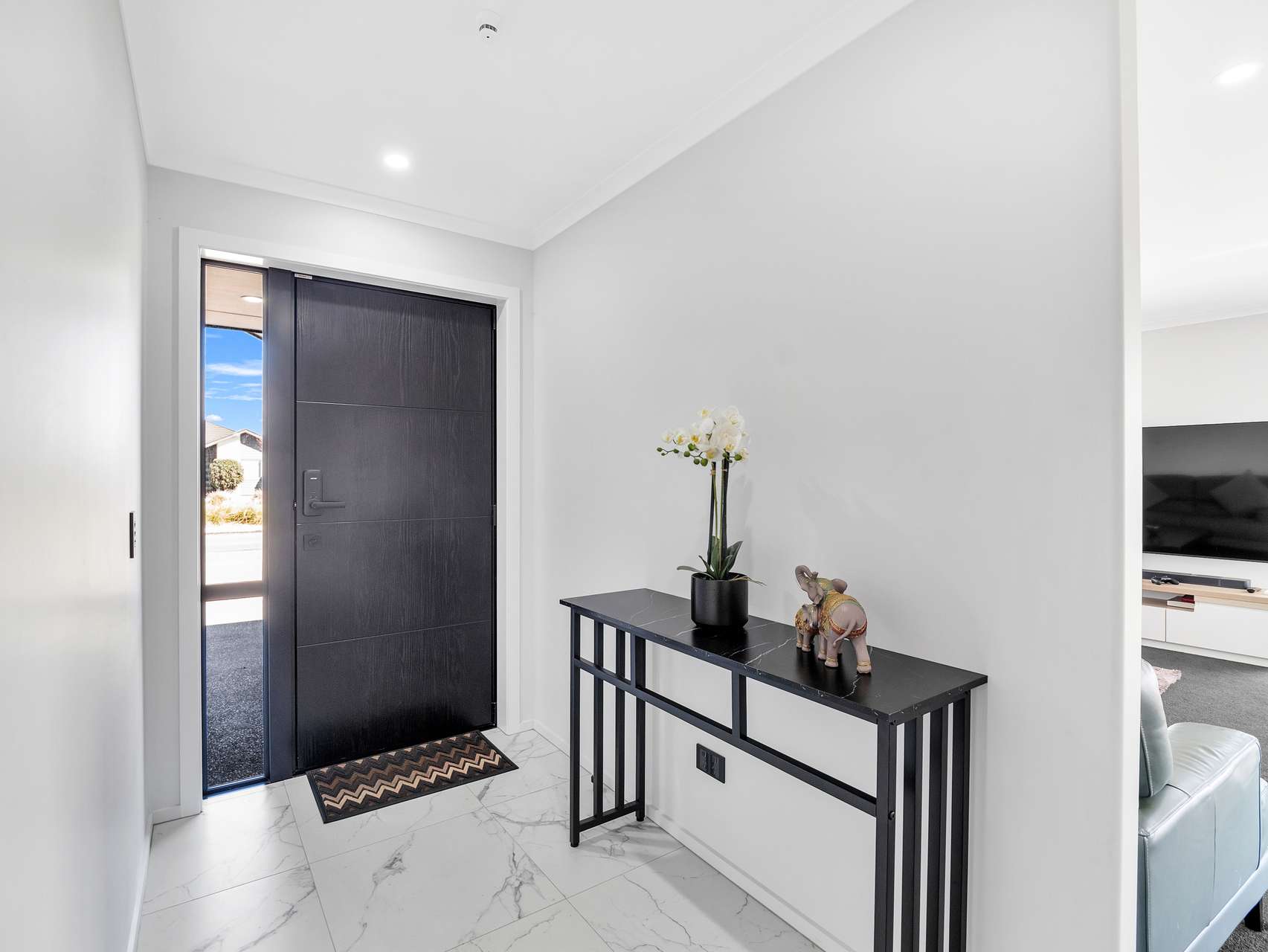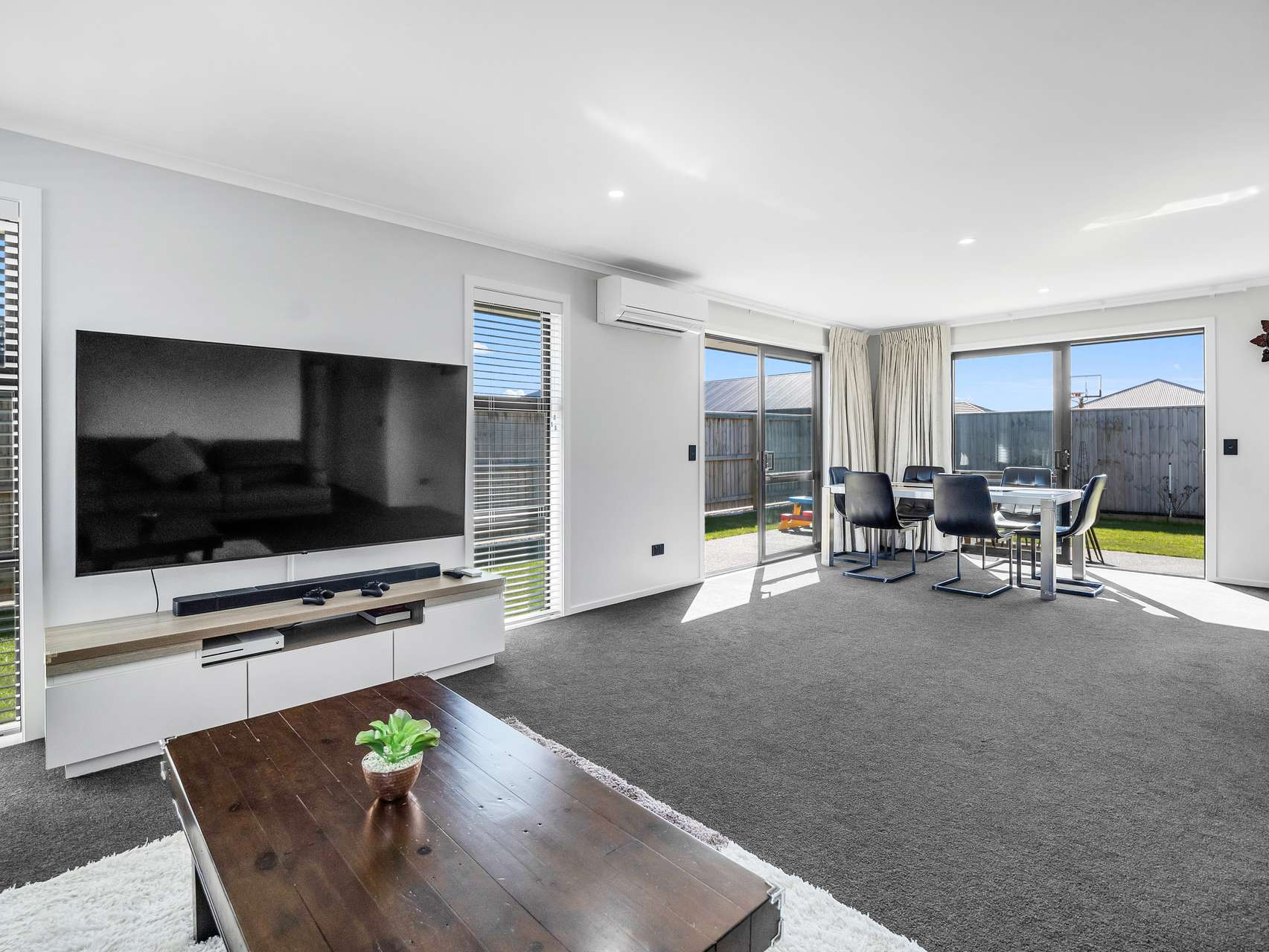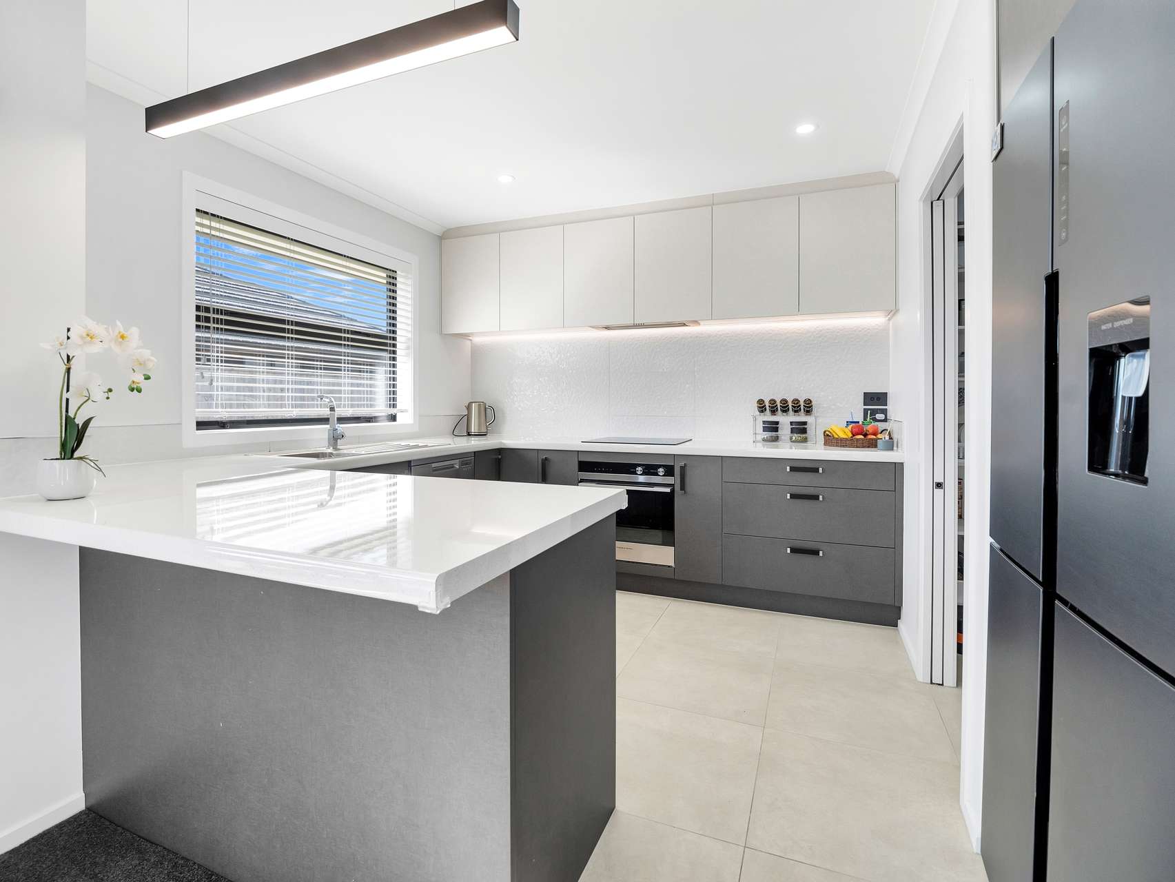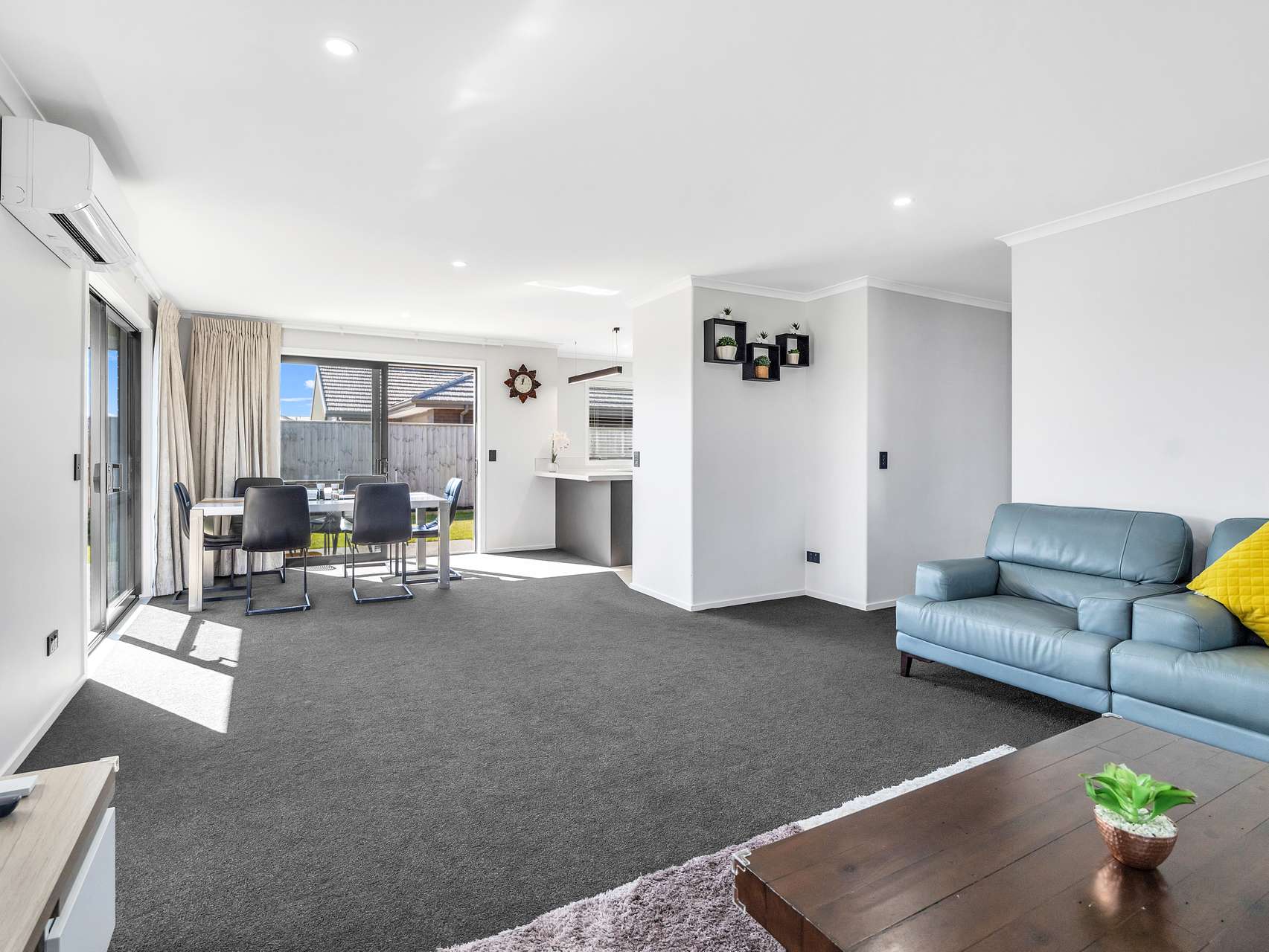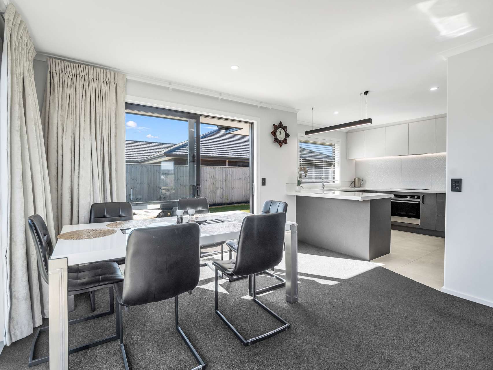 Step inside and the open-plan living zone does exactly what it promises - it connects everyone. The stunning kitchen has a walk-in pantry, it has crisp lines, contemporary finishes and beautiful tiles. The dining and lounge areas spill out toward the garden through generous sliders. Light, warmth and conversation naturally converge here, giving you that elusive blend of function and welcome.