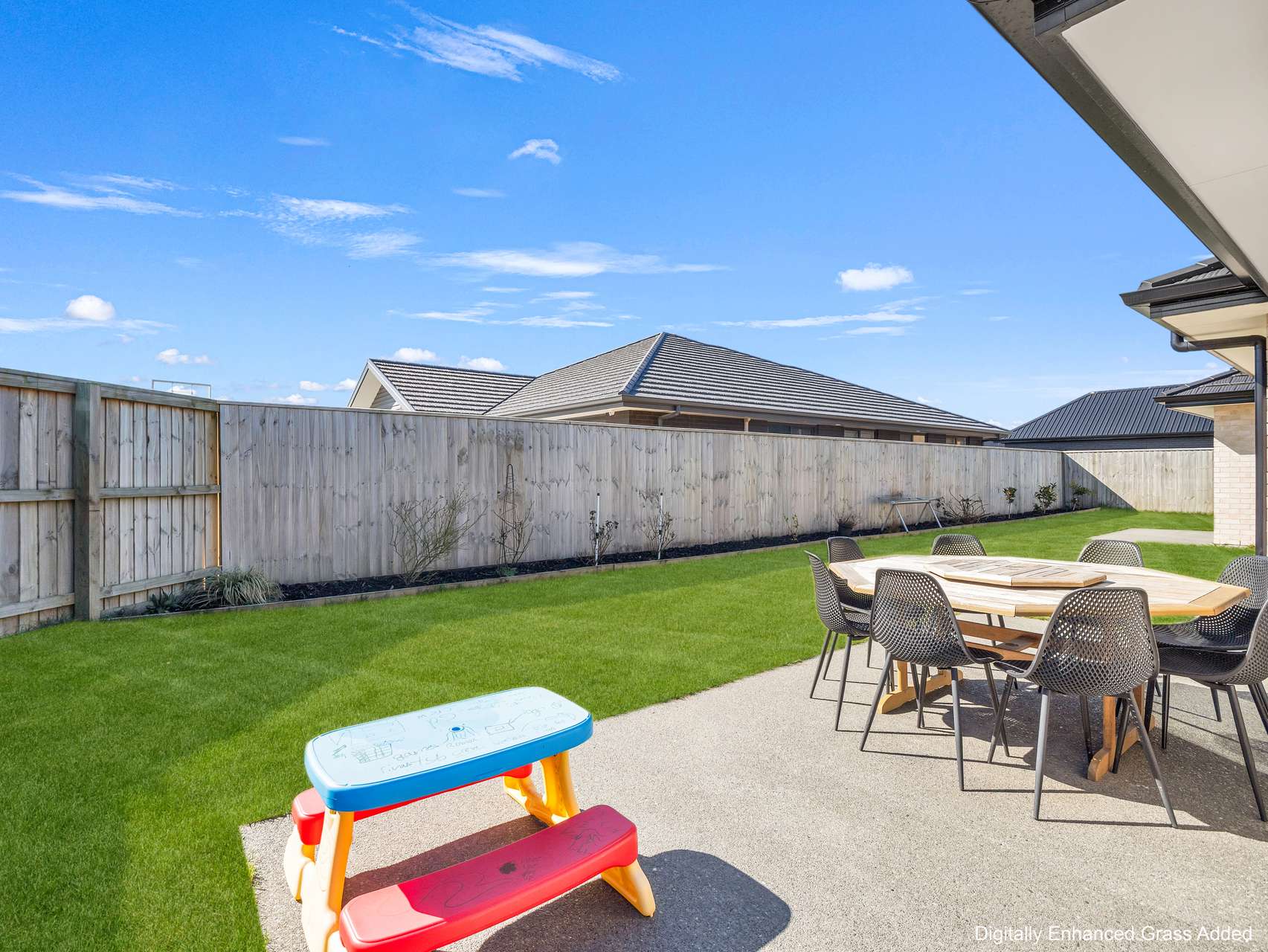 Outdoors, the 530m² approx section balances usability with ease. There’s room for play, raised garden ambitions, or simply a table and chairs for evening meals in the sun. The internal-access double garage plus extra off-street parking covers practicalities, and the street appeal is already handled by low-maintenance landscaping that frames the home’s sharp exterior.