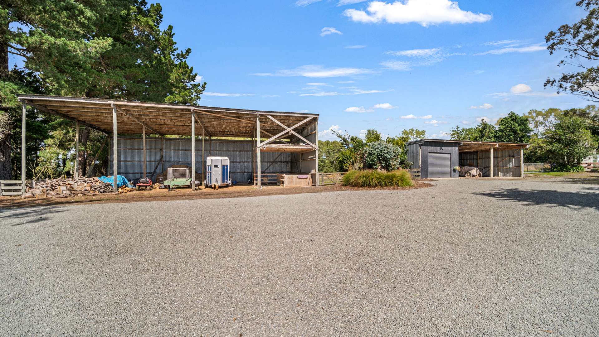 Adding to the appeal are multiple outbuildings, including a large garage with adjoining two-bay storage, big enough for tractor and horse float, a separate garage, and additional storage spaces. Whether you need room for vehicles, hobbies, or farming equipment, this property has it covered.