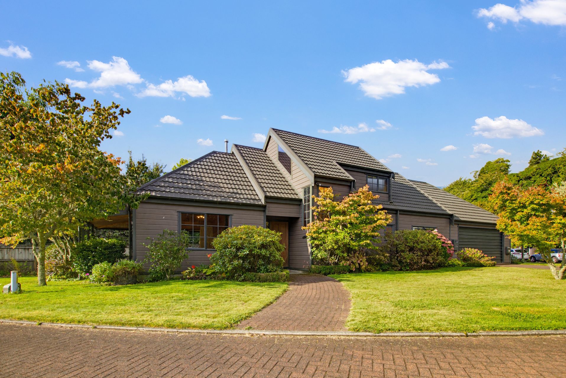 The living area is a real standout — a grand lounge with high pitched ceilings that enhance the sense of space and light, while a gas fire keeps things cosy. Gas hot water adds everyday efficiency.