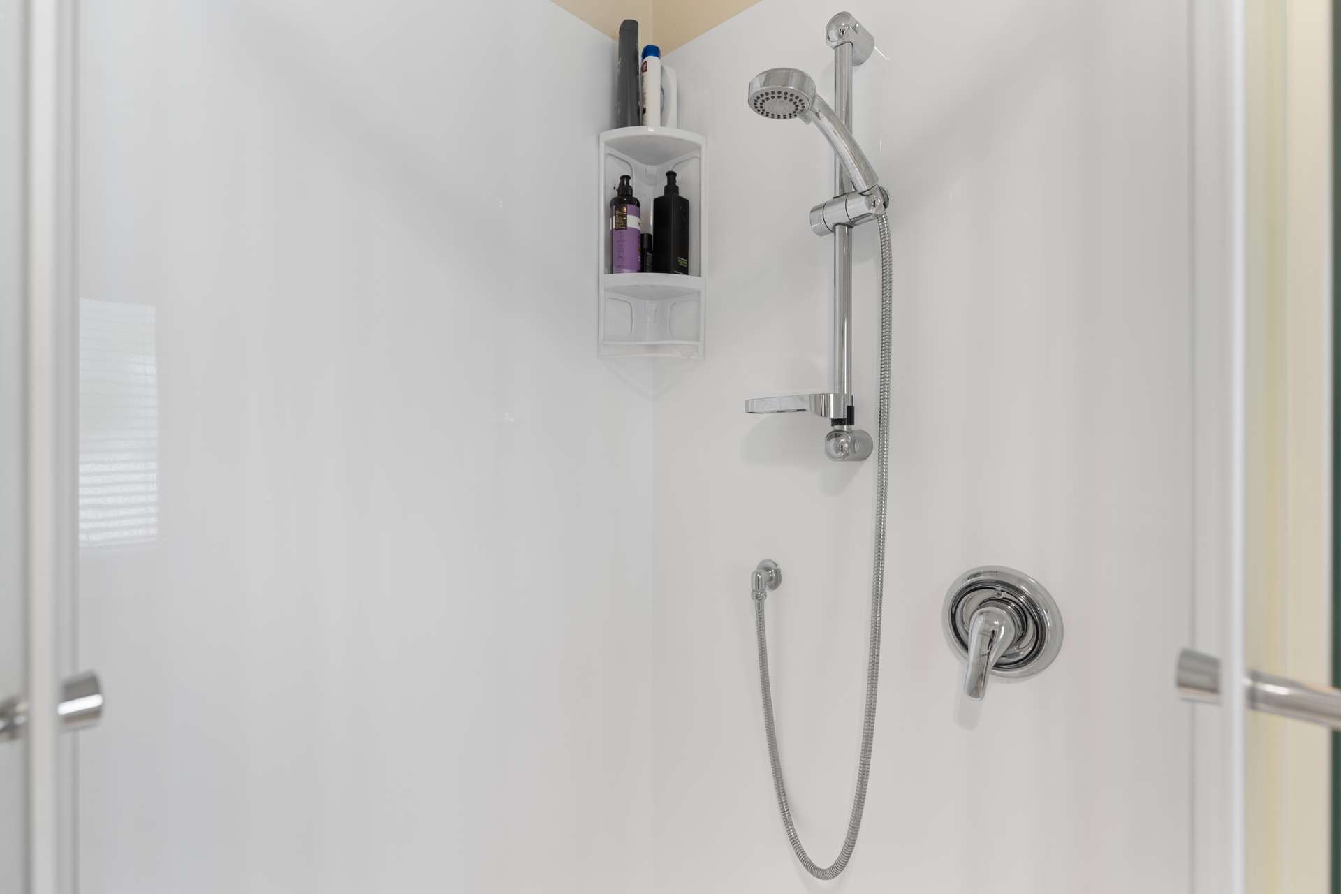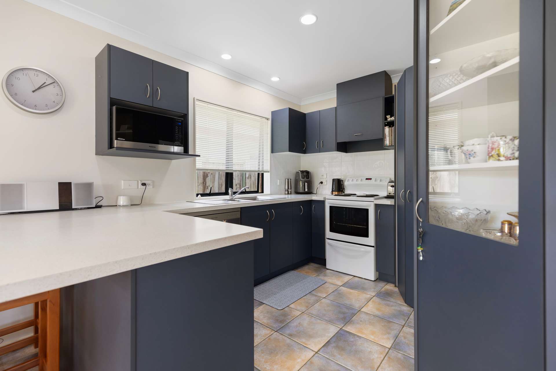 The open plan living and dining area connects nicely with the kitchen, and it flows out seamlessly to a private patio area with a beautiful backdrop. The living space is warm and cosy, relaxed and comfy, it has a ceiling fan for the height of summer, and a heat pump for year round use.
