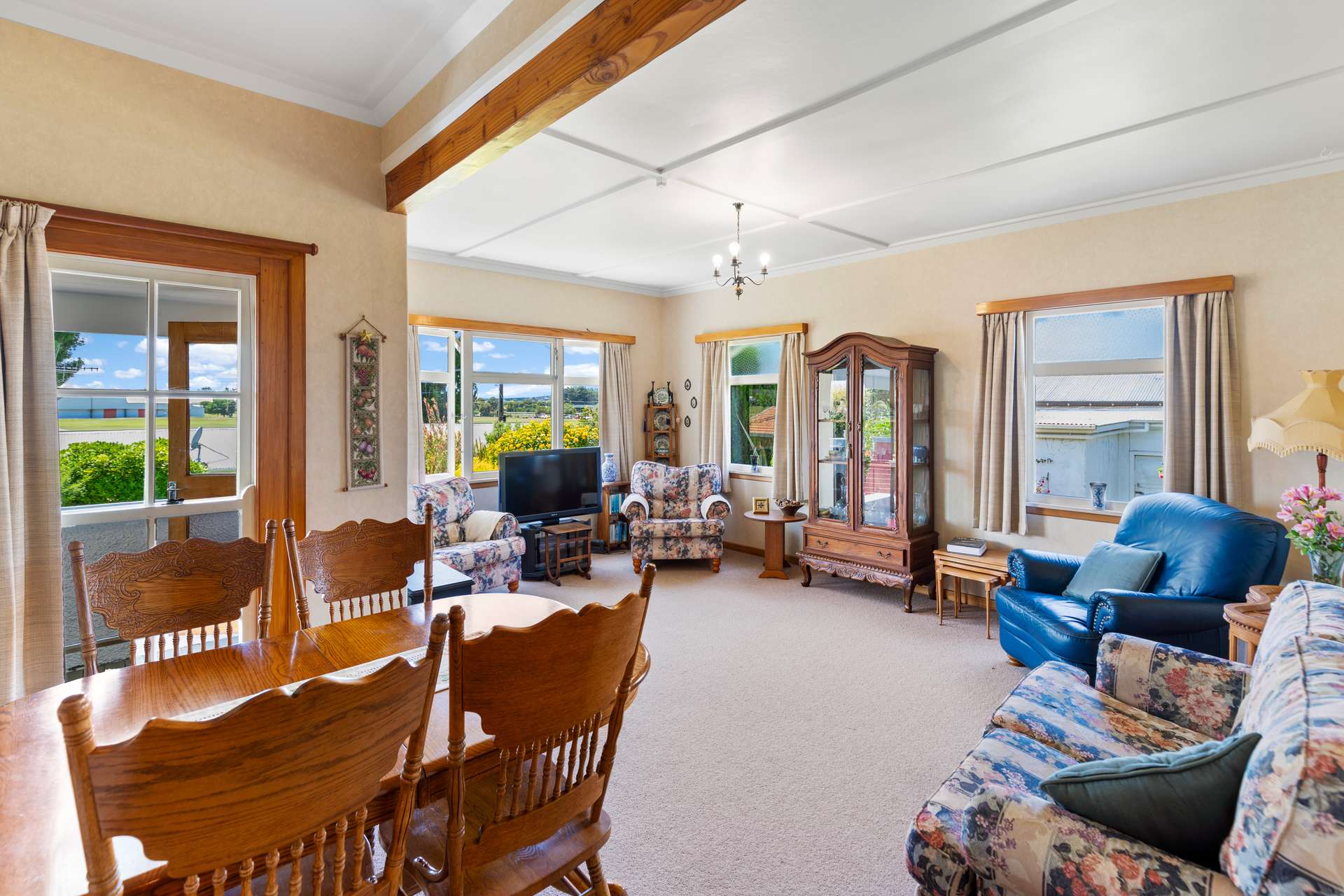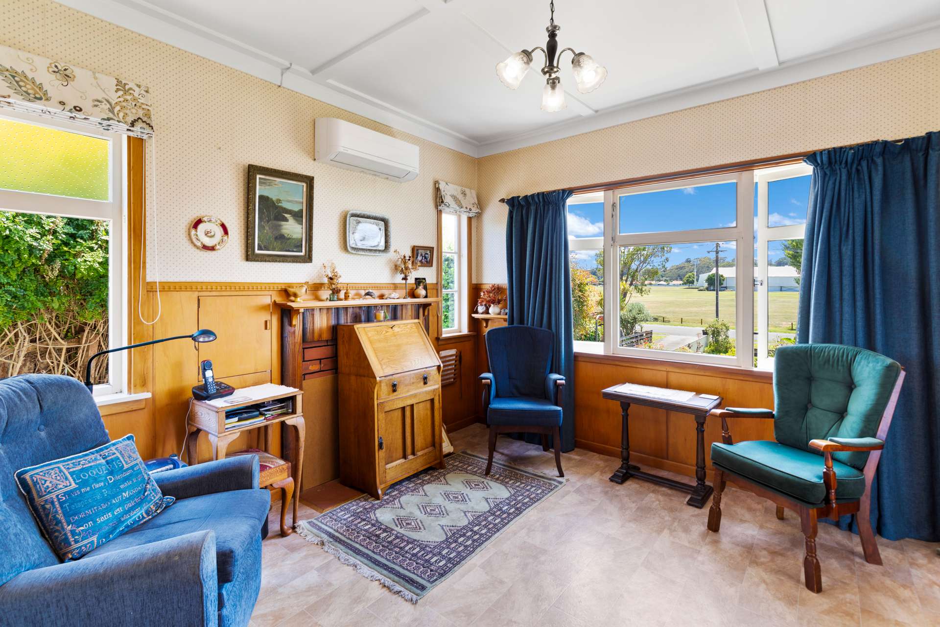 The modernised kitchen is well equipped with cabinetry for all your kitchen essentials plus bench space, and the sunny open plan dining (currently a second living area) is fitted with a heat pump for year-round comfort. There’s an extra heat pump servicing the hallway and bedrooms too.