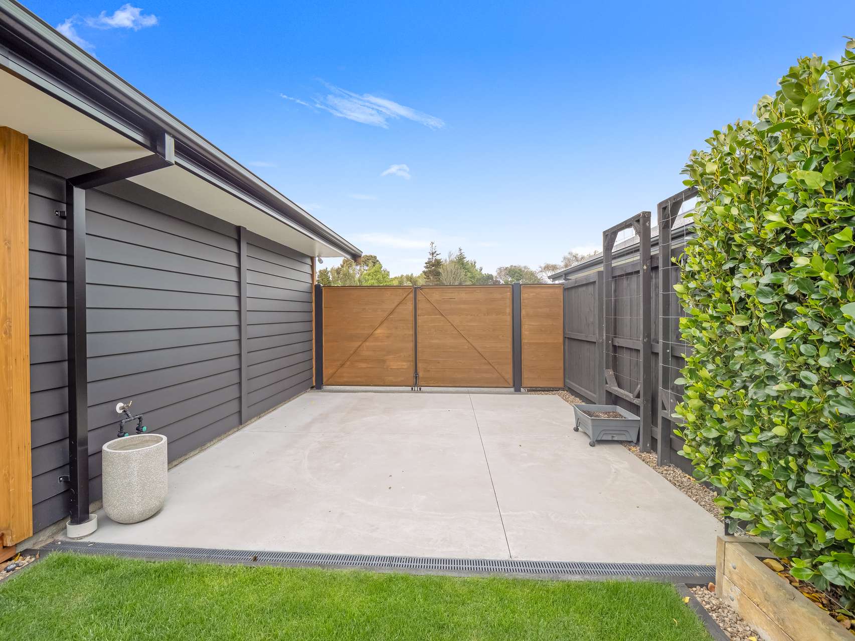 Outside, the neatly presented section offers secure parking behind double gates and off-street space for guests, boat or trailer.