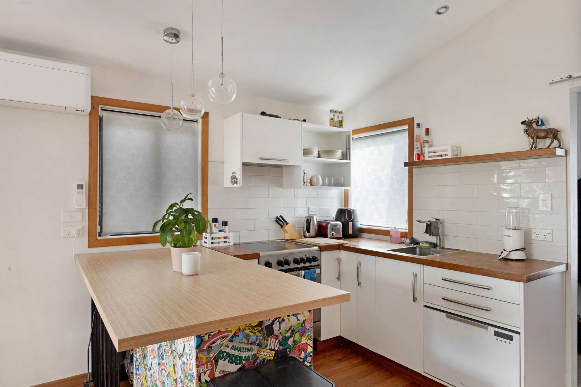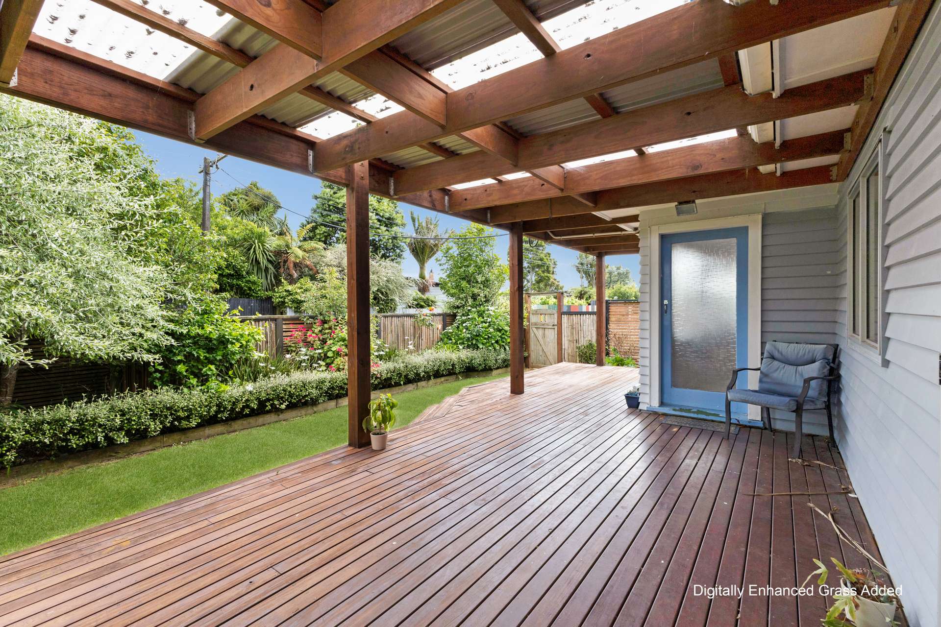 The main house boasts three generous double bedrooms, a stylish bathroom, and a light-filled open-plan living area that flows seamlessly onto a large, sunny covered deck. Perfect for entertaining or relaxing, the deck overlooks a private, landscaped garden and a fabulous front yard ideal for kids and family gatherings. The kitchen retains its classic charm with a sunny outlook, while the separate laundry adds convenience.