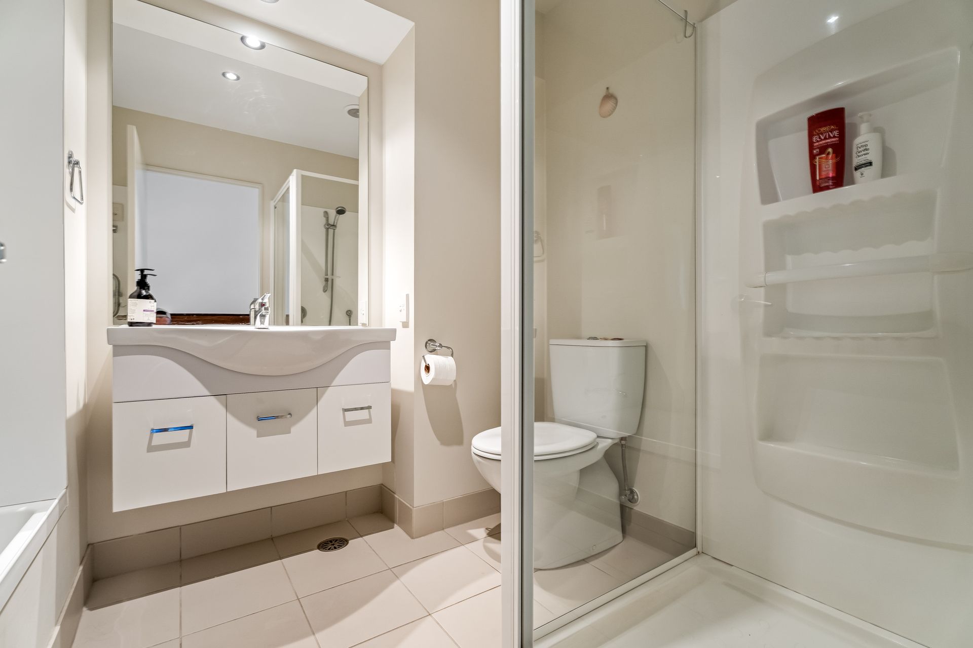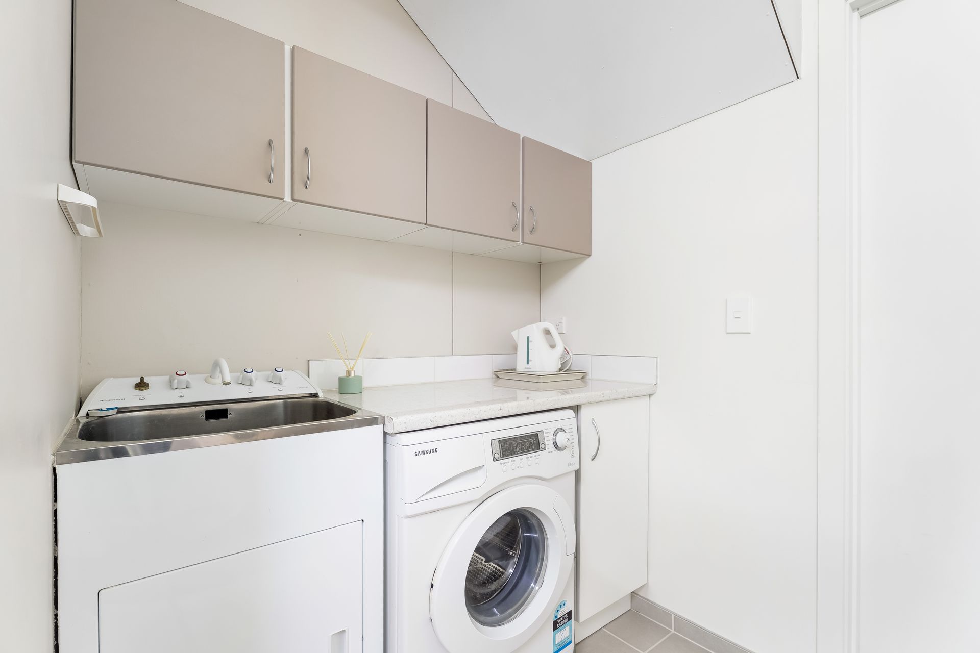 The accommodation is cleverly split across two levels to suit a range of living arrangements. Upstairs, the master bedroom and second bedroom sit alongside a shared bathroom, creating a comfortable sleeping zone close to the main living areas. Downstairs, the third room enjoys privacy of its own, complete with an ensuite, integrated laundry, and direct access to a private patio — ideal for guests, extended family, or a flexible work-from-home or rental option.