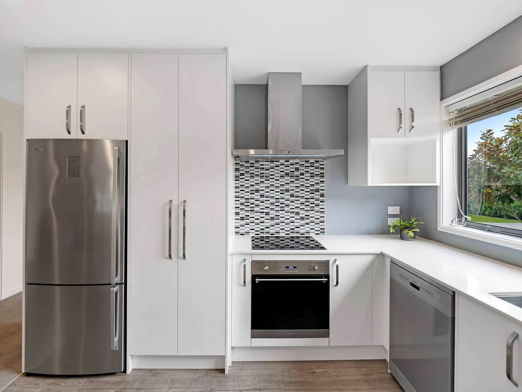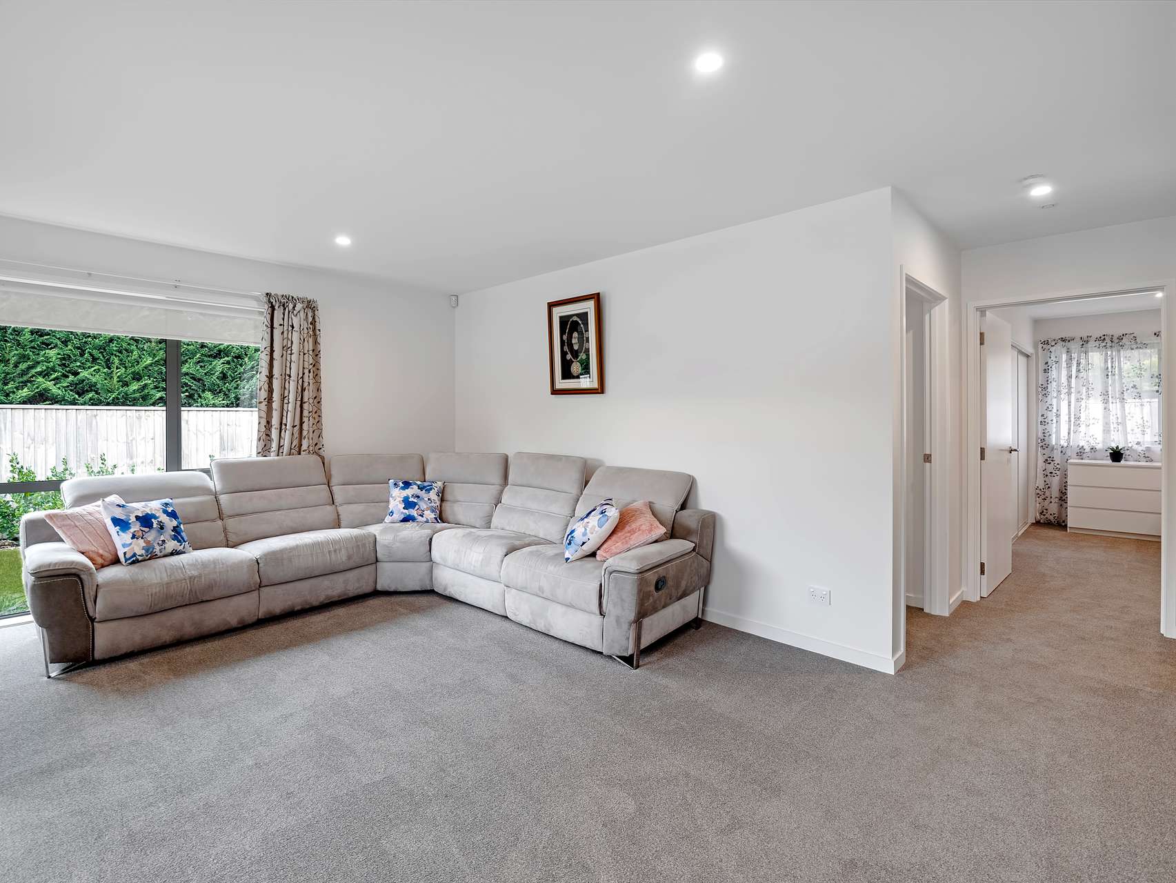 Comfort and practicality go hand in hand here, with a tiled bathroom (including underfloor heating), a separate toilet with handbasin, wide doorways, and internal access carpeted garaging with laundry facilities. The home is double glazed throughout and includes an off-street car park for visiting friends or extra convenience.