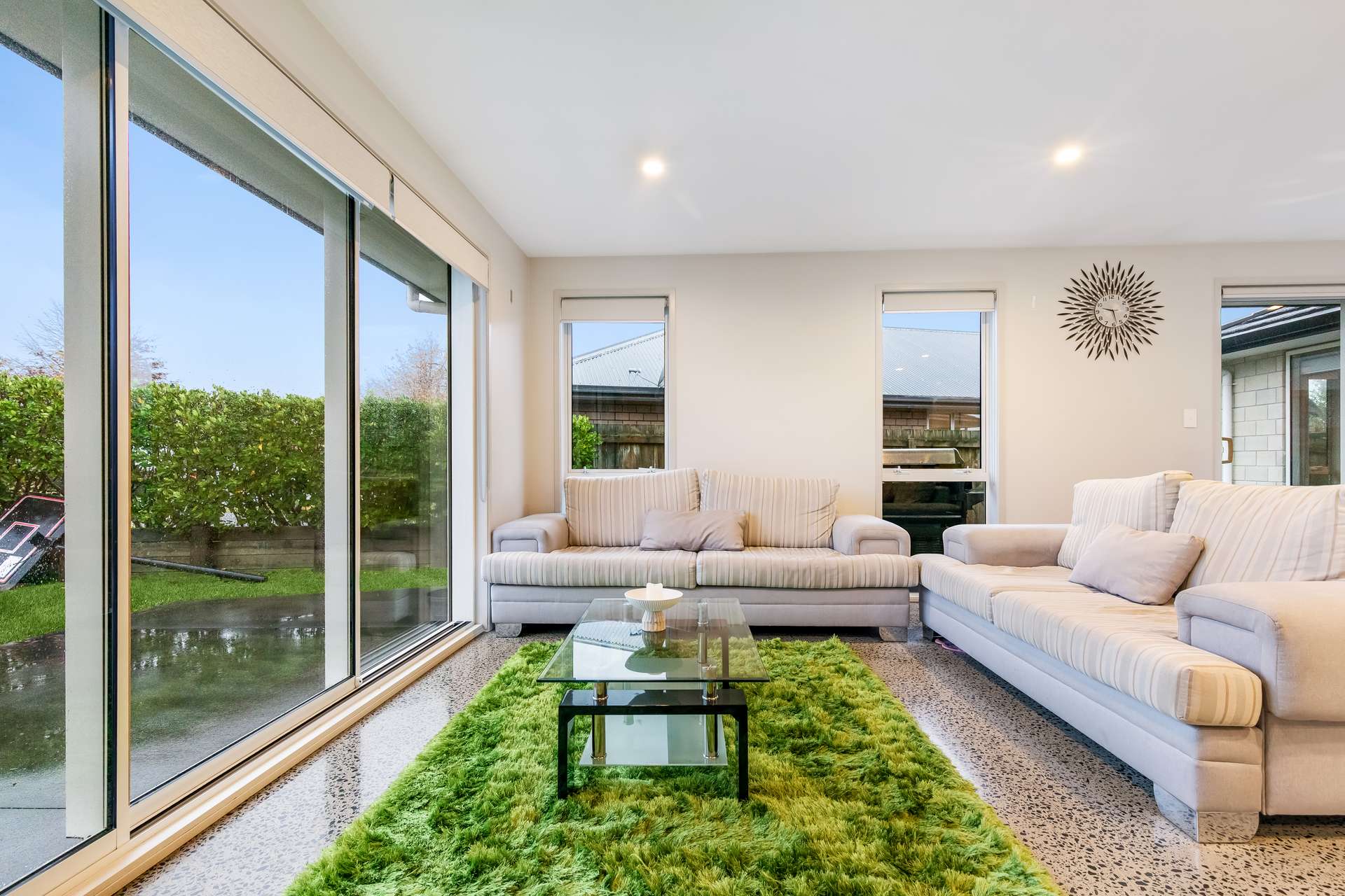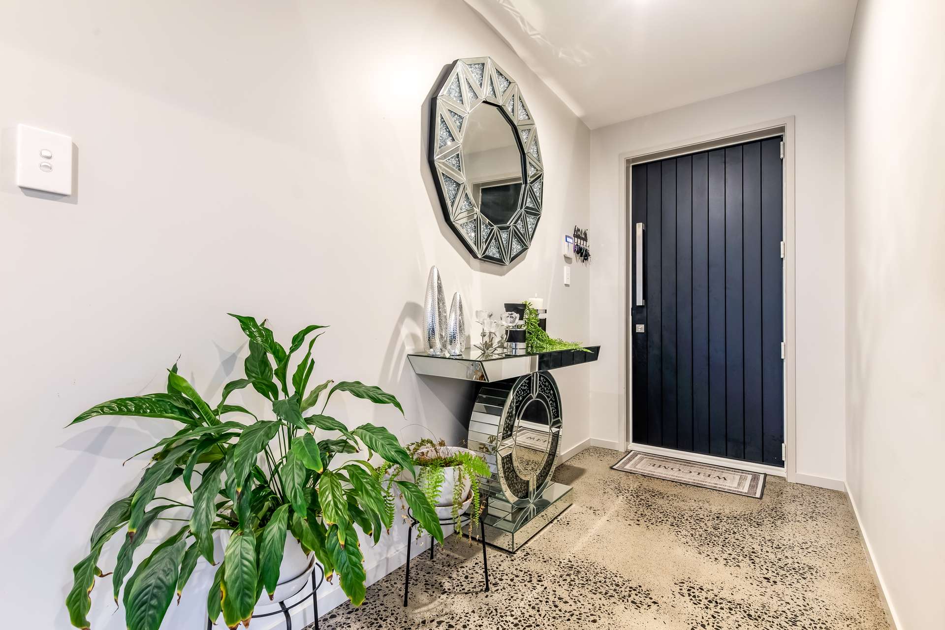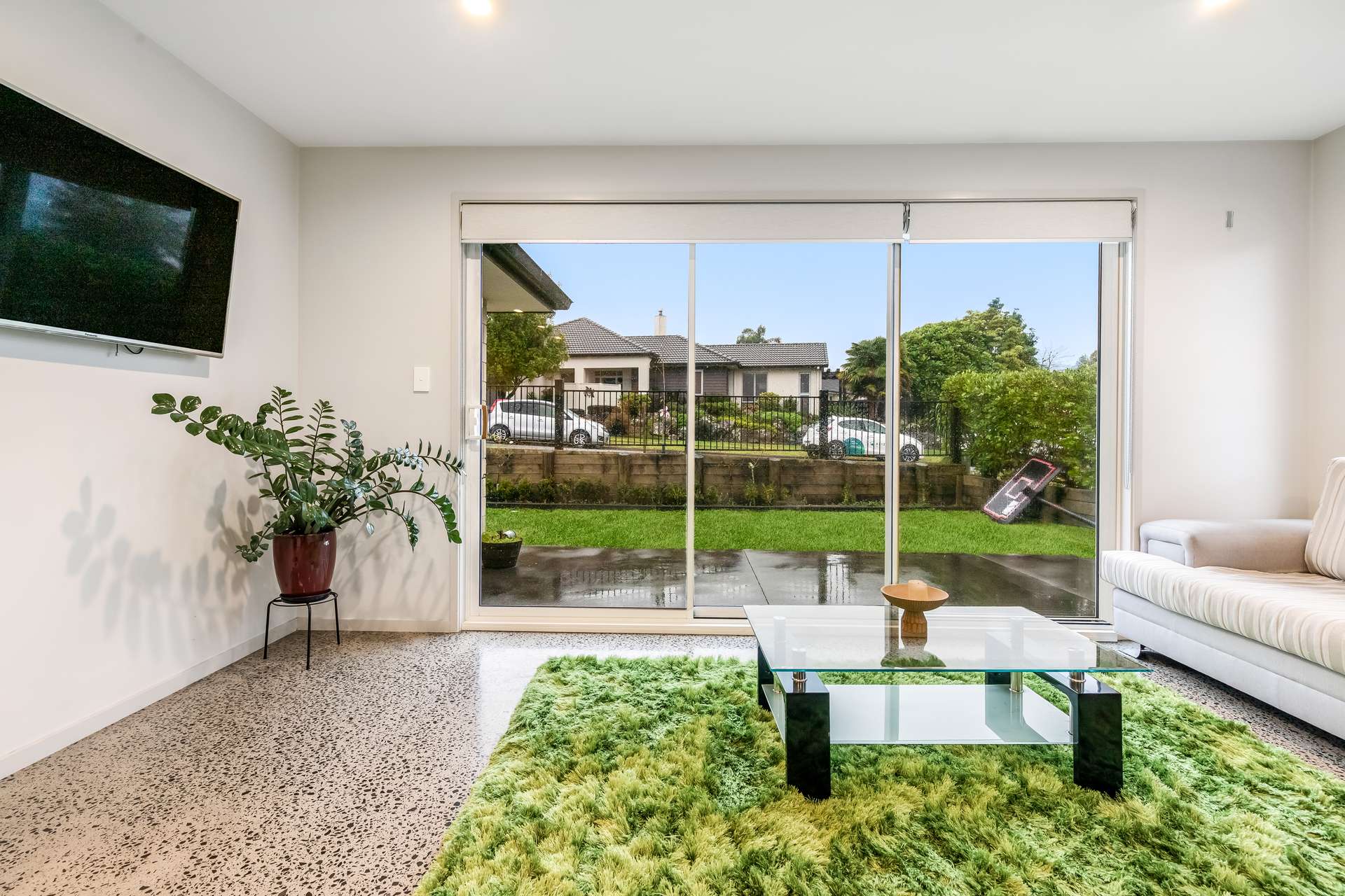 Inside, you’ll find a spacious open-plan kitchen, living, and dining area, complemented by polished concrete floors for a modern touch. The generous layout includes large windows that let in natural light and create a nice connection to the outdoors. There’s also a separate carpeted family room, offering that all-important second living space.
