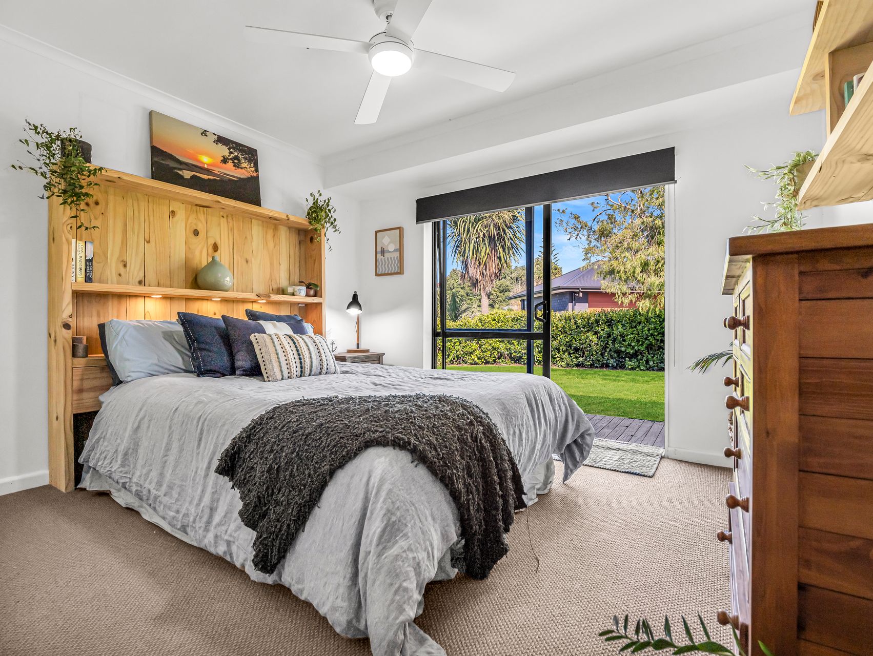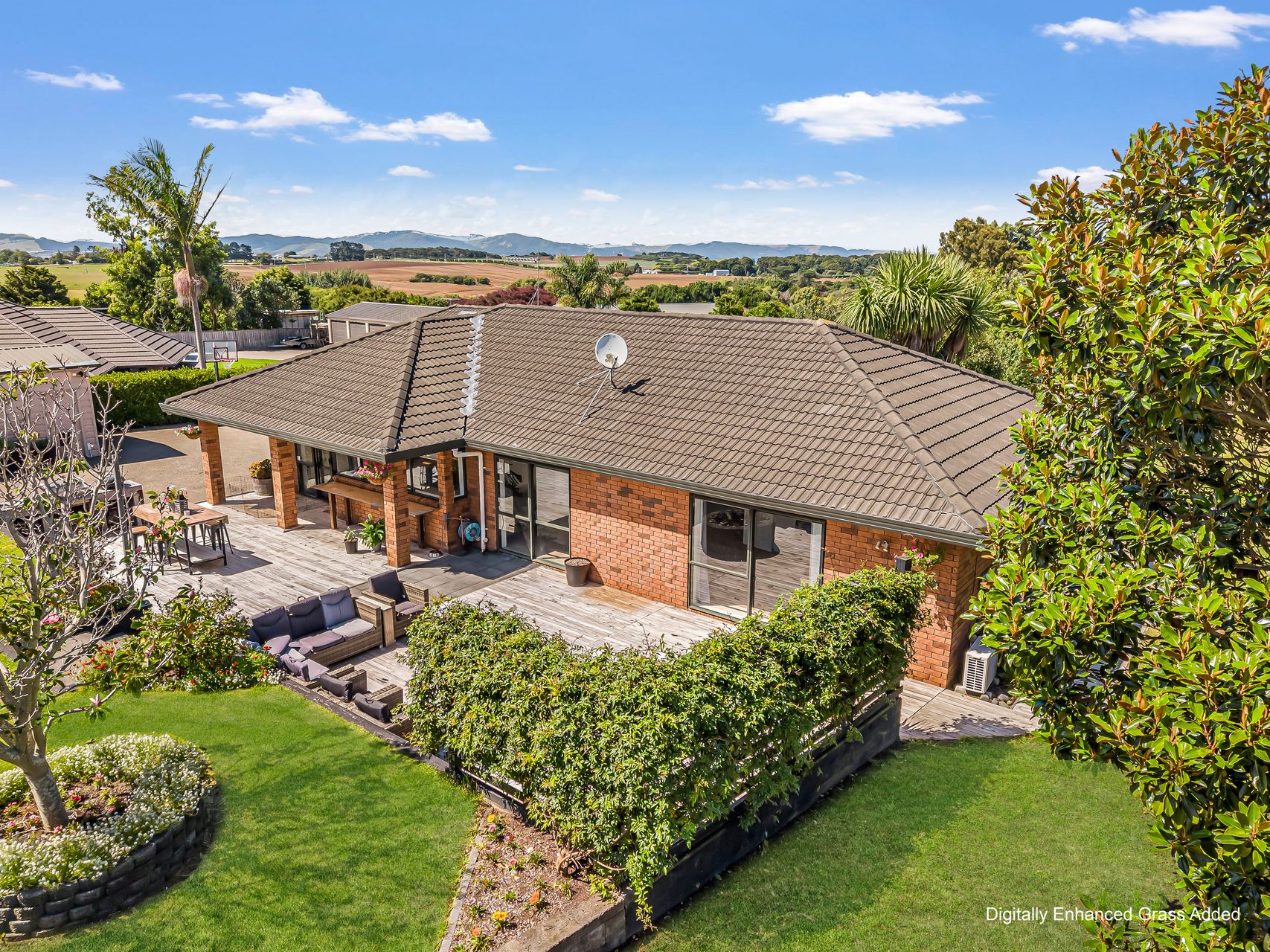 Outdoors, wide lawns, mature planting and thoughtfully tiered landscaping create a setting that feels both open and private. Multiple outdoor areas cater to entertaining, relaxation or casual afternoons in the sun, while raised vegetable beds and established fruit trees invite a productive garden lifestyle. There’s ample space for kids, pets and future plans, all framed by well-considered planting and shelter. A large separate garage provides secure parking, storage or workshop potential, complemented by generous off-street parking.
