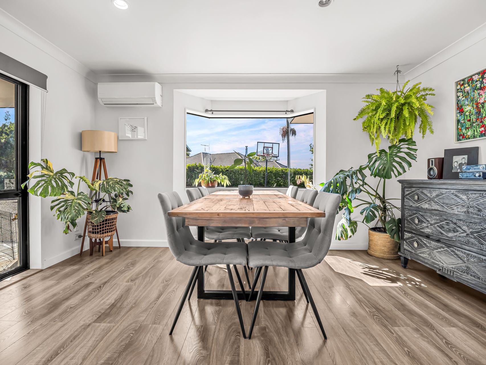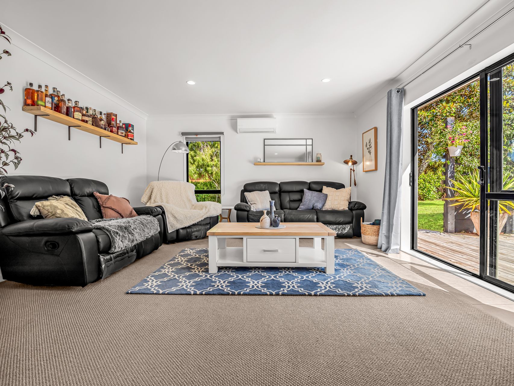 Accommodation is smartly arranged, with four bedrooms providing comfortable proportions and built-in storage. The main bedroom is paired with a sleek ensuite, while the family bathroom has tasteful modern finishes. A dedicated laundry adds everyday practicality, complete with bench space, storage and direct outdoor access.