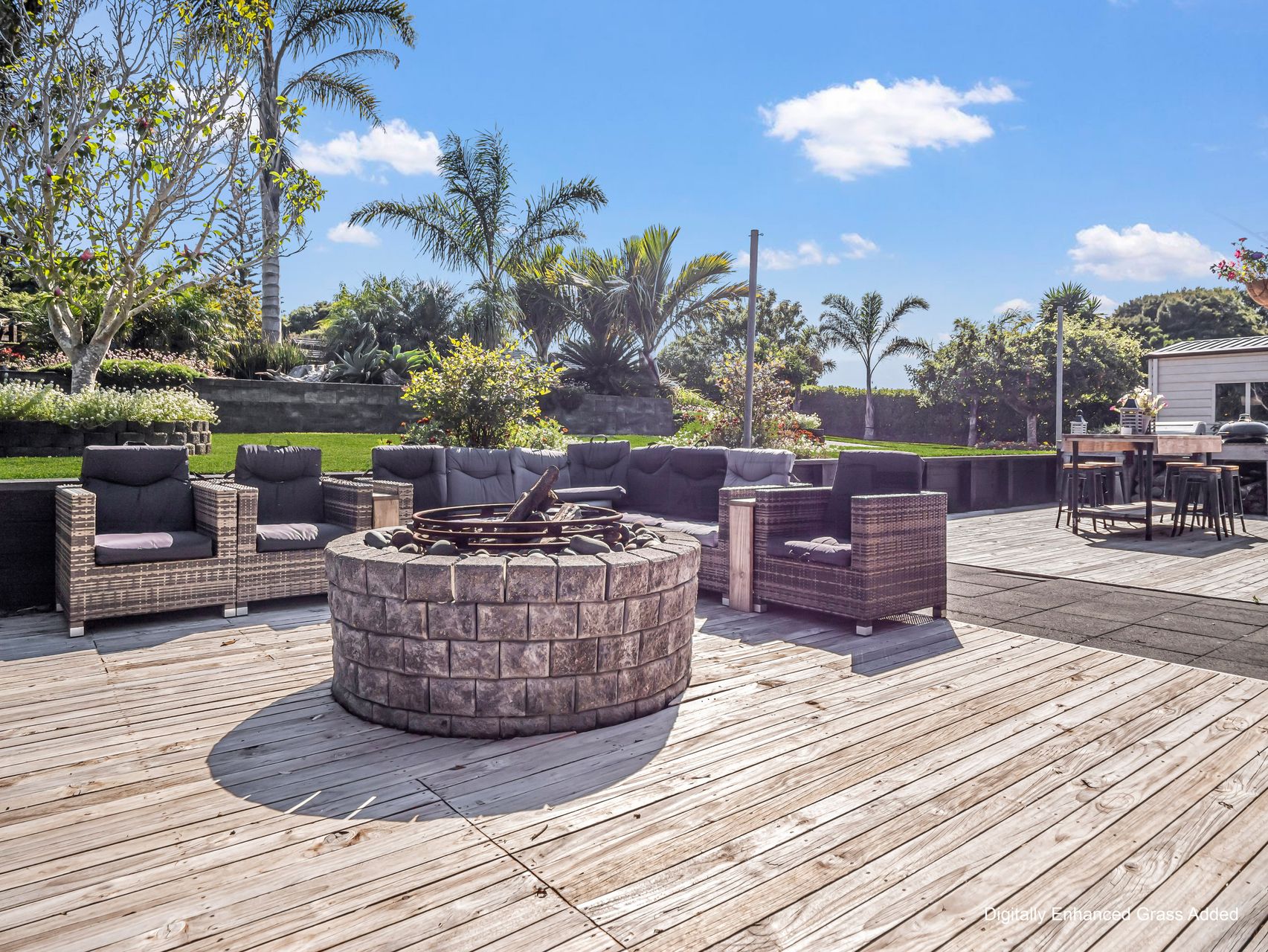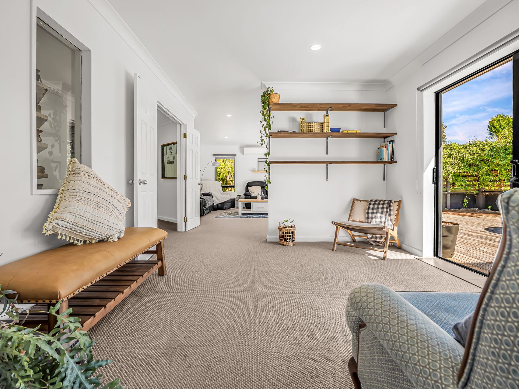 Everyday living centres around a well-appointed kitchen, finished in a contemporary palette and anchored by a generous island bench that naturally brings people together. Dining and living zones connect with ease, opening out to wide decking and outdoor entertaining areas that extend the living footprint well beyond the walls. A separate lounge offers a quieter setting, ideal for relaxed evenings or a change of pace from the main hub.