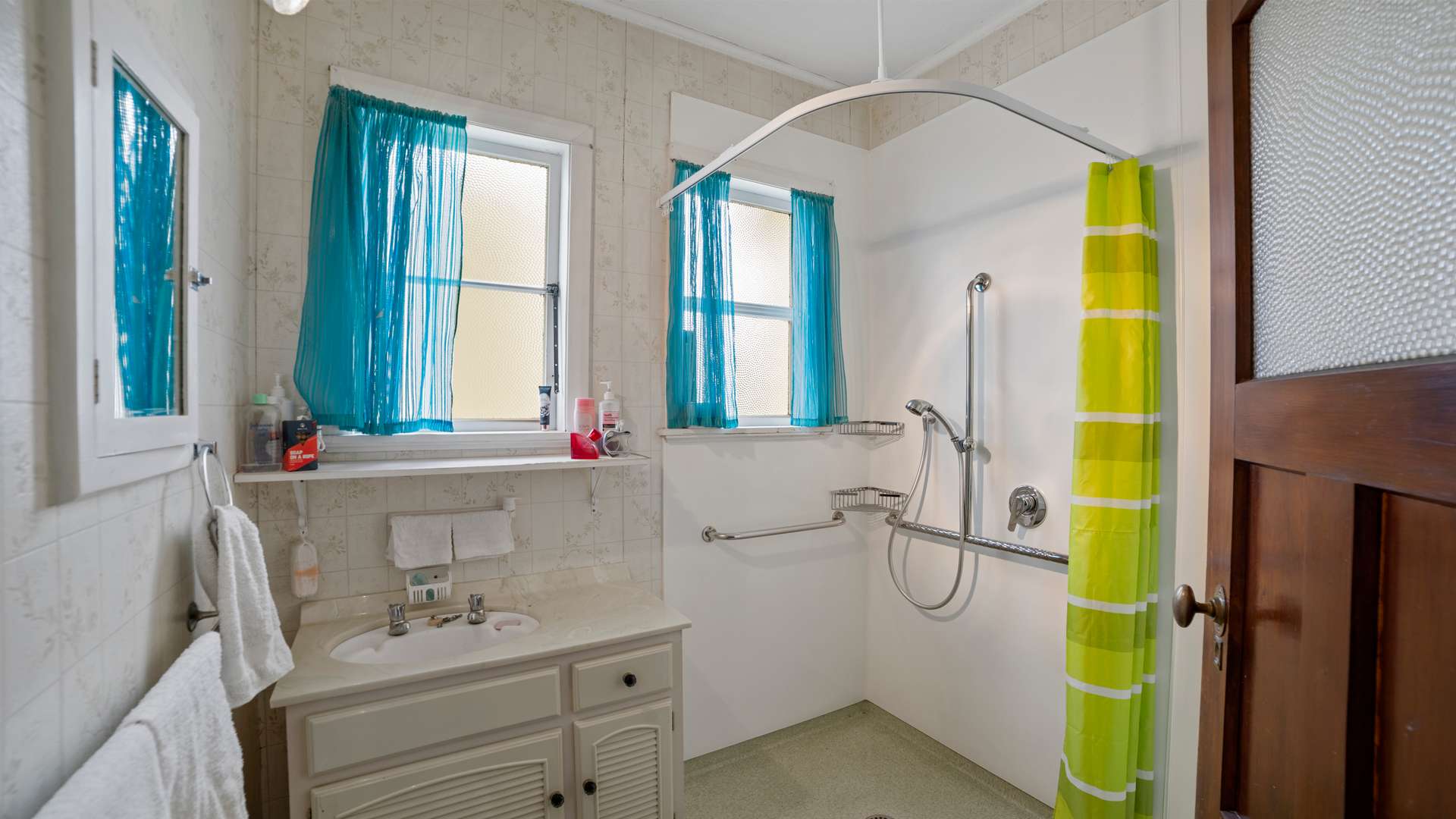The bathroom has been updated to include a mobility friendly shower, and there is a separate toilet too.