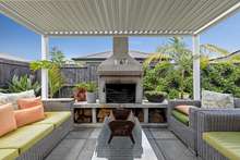 The outdoor space is truly exceptional, with a partly covered patio ideal for alfresco dining or relaxing in the spa pool. A fabulous outdoor oven adds a touch of luxury, making this area perfect for entertaining or enjoying quiet evenings at home.