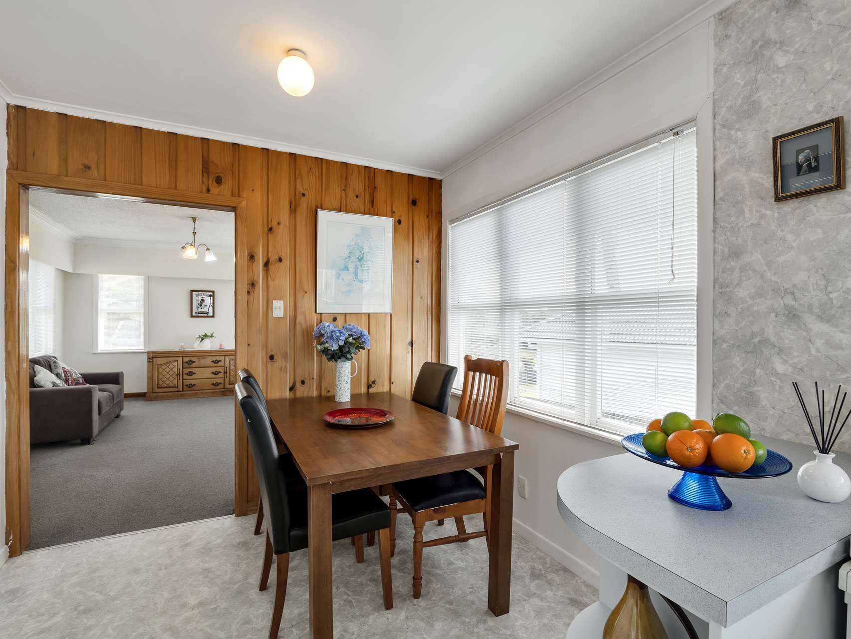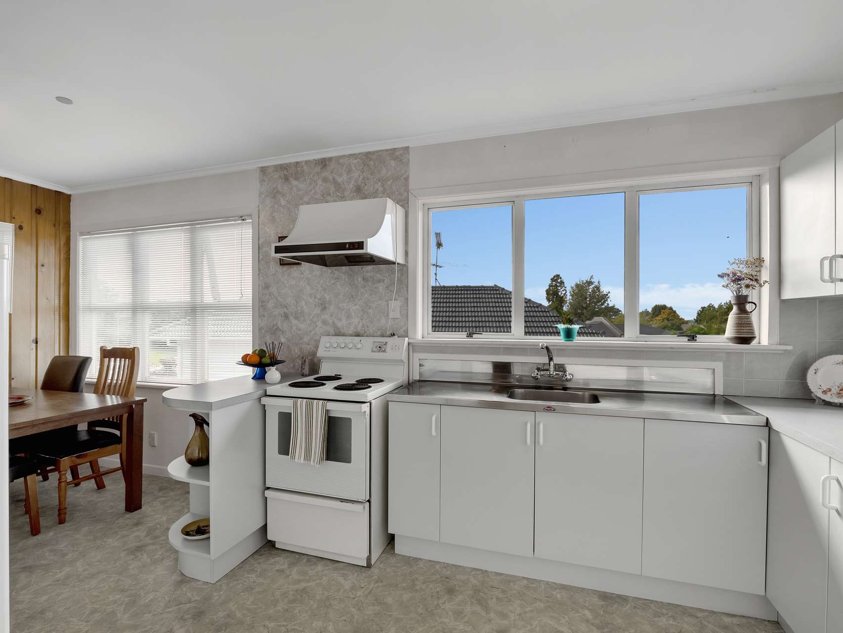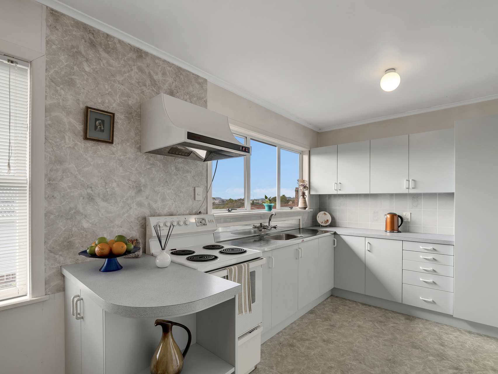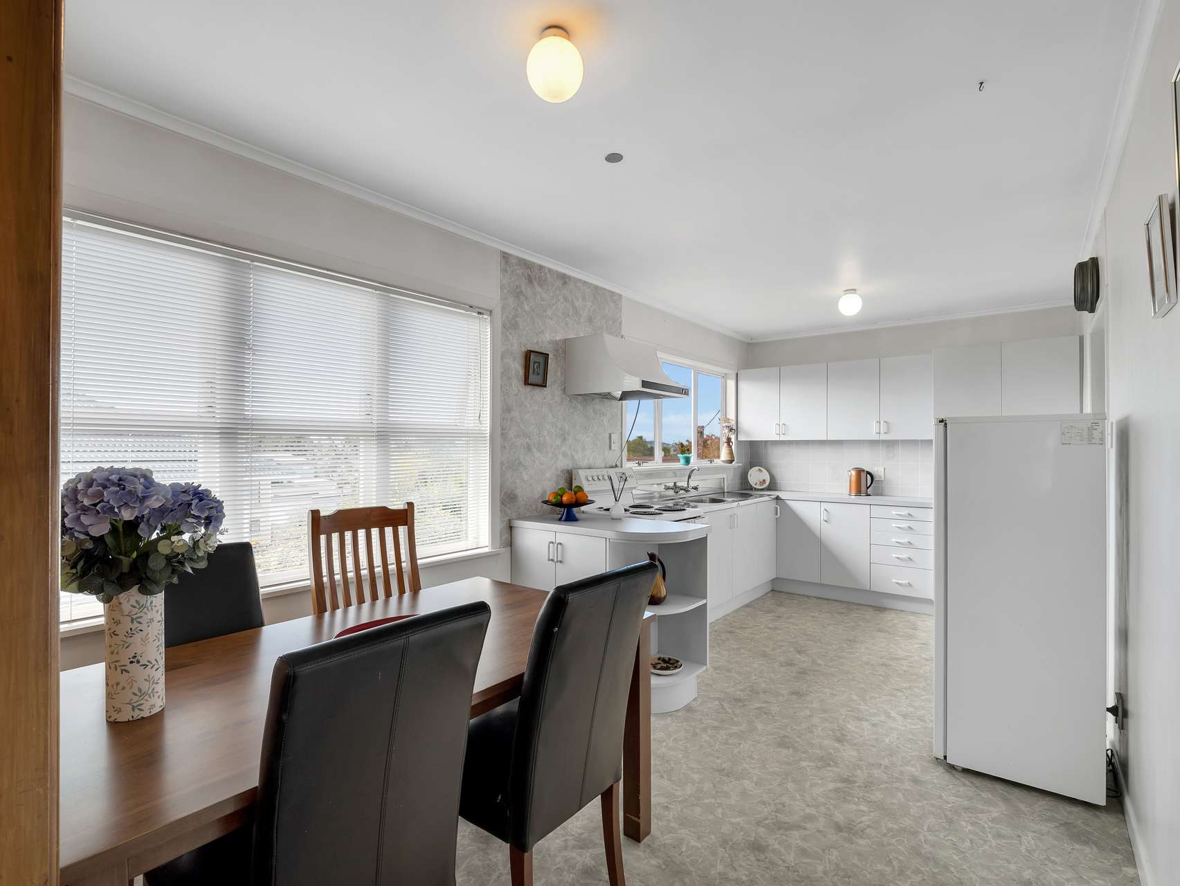 The living room has rich natural timber feature walls and a heat pump for year-round comfort. The sunny dining area is warm and welcoming. The kitchen is bright and practical with space for all the essentials and enjoys an elevated expansive outlook. Three good-sized bedrooms with built-in wardrobes.