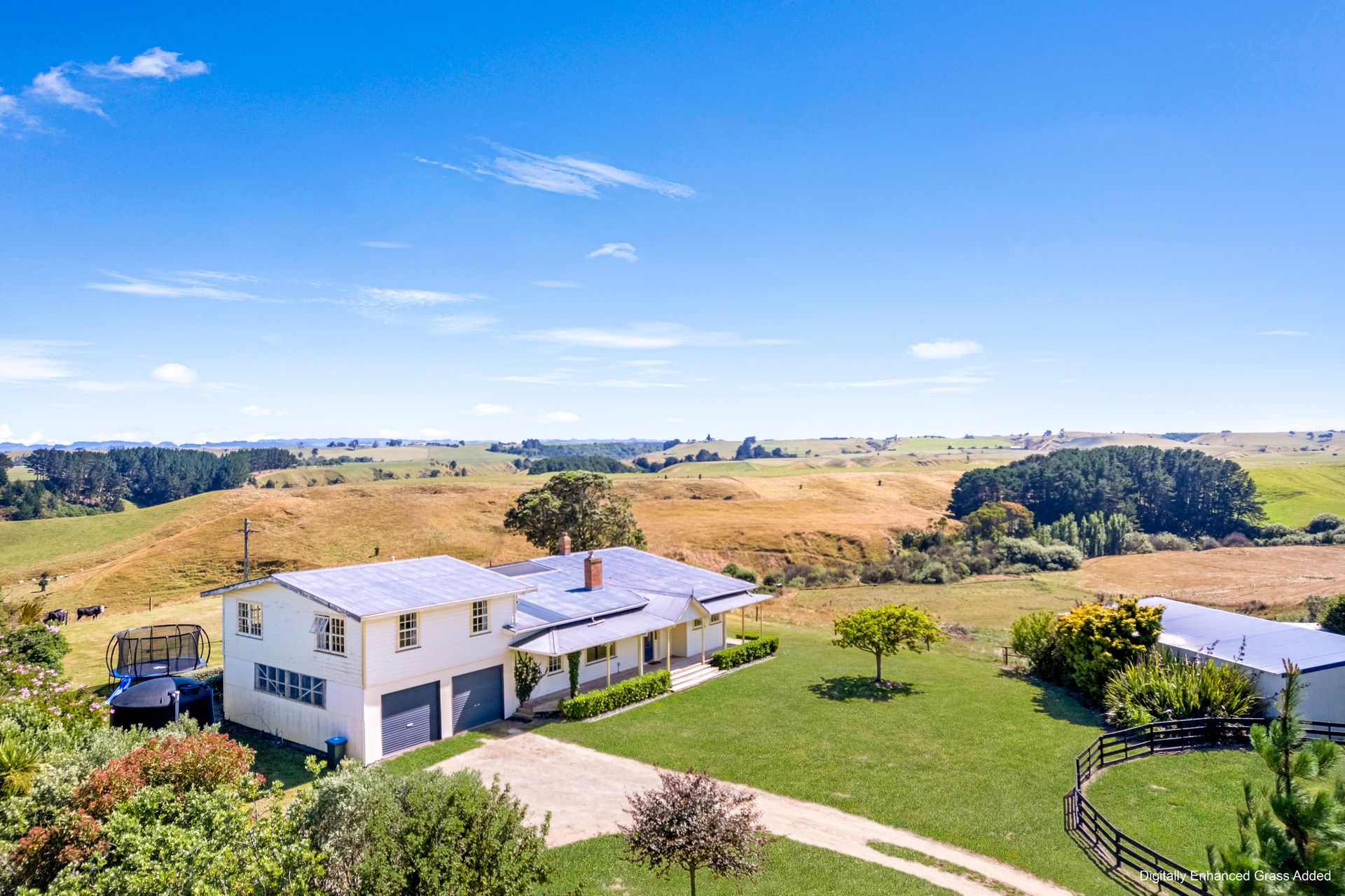 There is an attached four car garage with internal access for parking and a large three bay implement shed for farming equipment or calf rearing plus a corral for animal management.