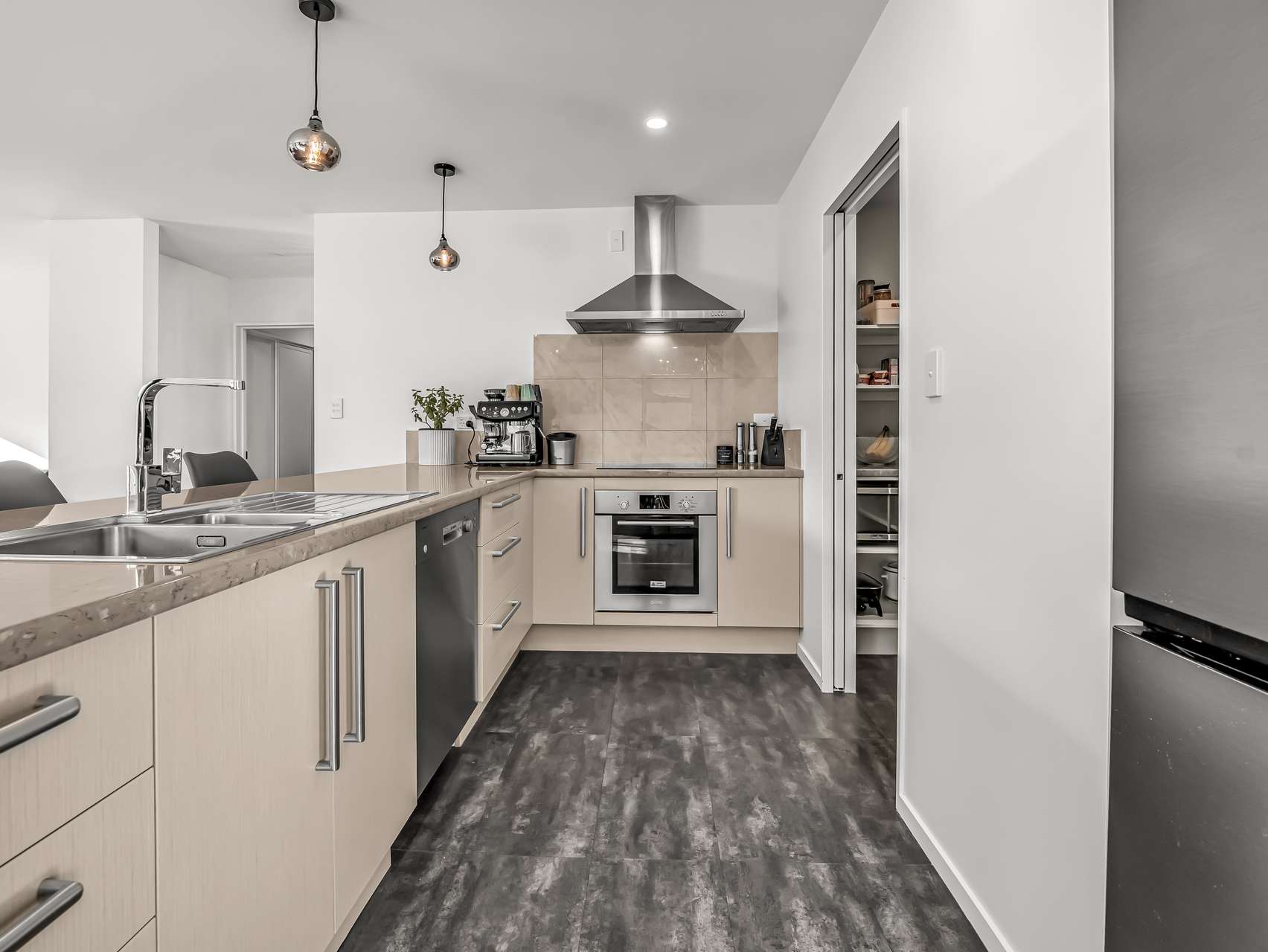 The 190m² floor plan is thoughtfully configured, with a sunny open-plan living zone that flows seamlessly through stacker doors to the patio. The well-appointed kitchen features quality appliances, generous bench space, and room for a double fridge – making it the true heart of the home.