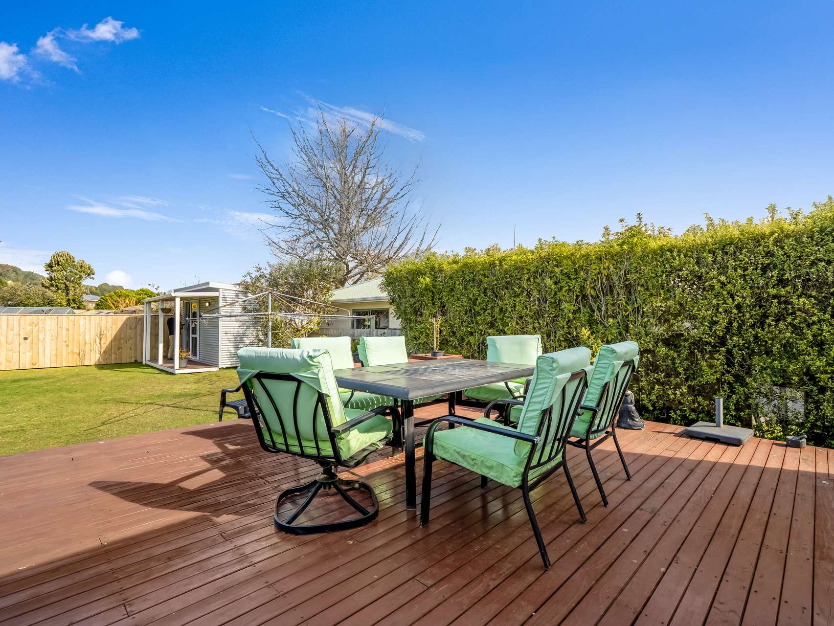* A serious timber deck with inbuilt seating will cater for the best of summer enjoyment.