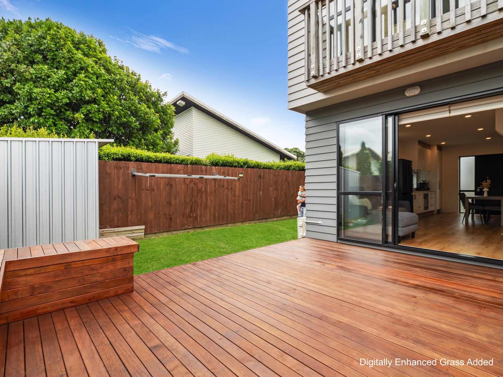 Downstairs, the kitchen, dining and lounge connect seamlessly, in a welcoming hub that feels both private and sun-soaked. Large sliders draw you outdoors to a generous timber deck and an actual yard that wraps around the back.