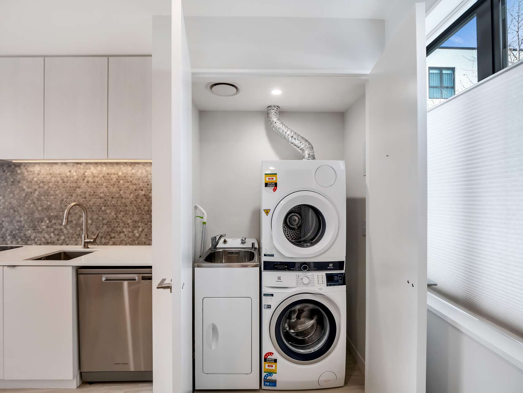 Every detail has been considered: heat pump, ventilation system, electric blinds, thermal drapes, plus a laundry nook tucked out of sight in a stylish cupboard. This home carries a Homestar 6 rating, meaning lower power bills, drier air and healthier living, all part of the latest in sustainable design.