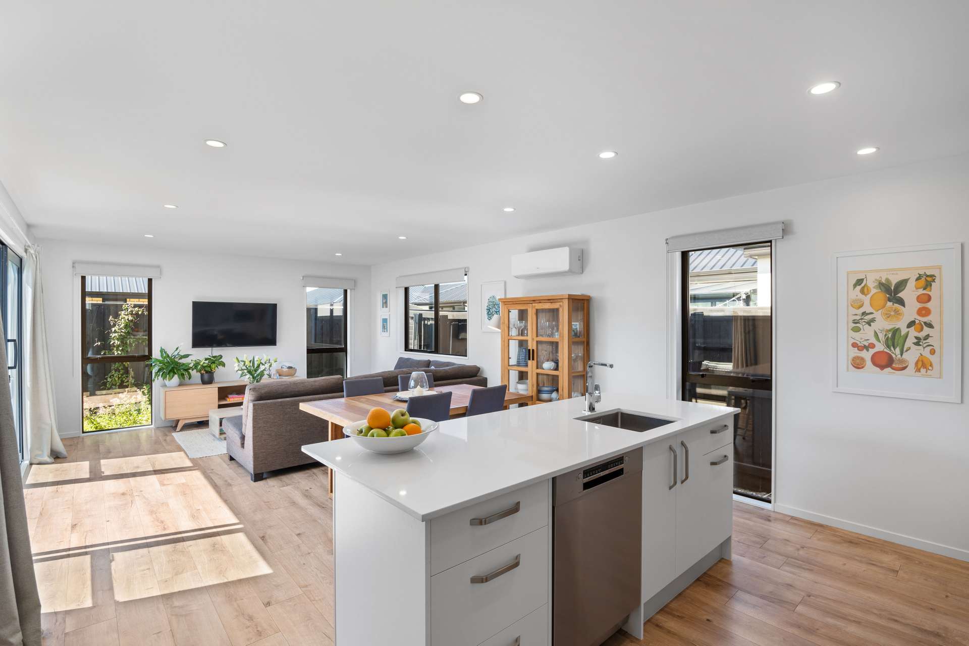 Uncompromised comfort is achieved by the integration of a heat pump, and advanced double glazing featuring low-E glass, argon gas, and thermally broken aluminium windows, all enhanced by superior insulation and 2.2m high polycore internal doors, ensuring optimal heat flow throughout the floor plan.