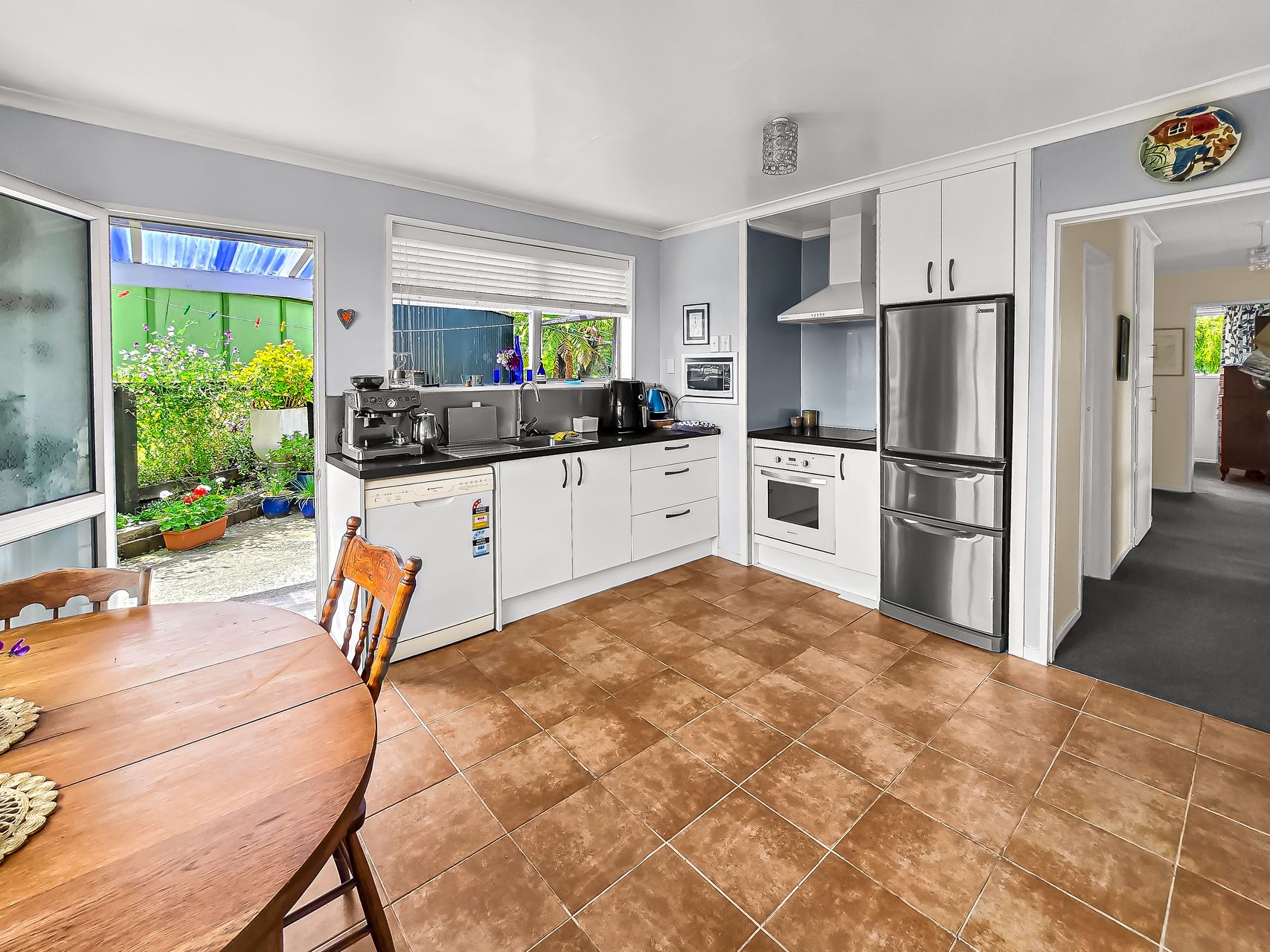 The updated kitchen enjoys excellent natural light and offers generous storage, including a large pantry, making it both practical and stylish. A separate laundry with additional storage adds to the home’s everyday convenience.