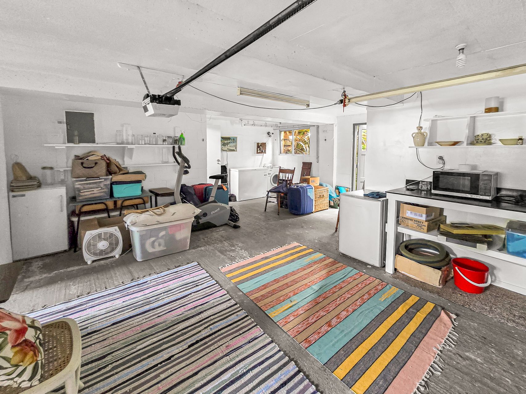 The home offers three double bedrooms and two bathrooms across its split levels. Upstairs are two double bedrooms along with a spa shower and separate toilet, while the lower level includes a third double bedroom and a second bathroom. A large basement area provides further development potential or excellent storage options.