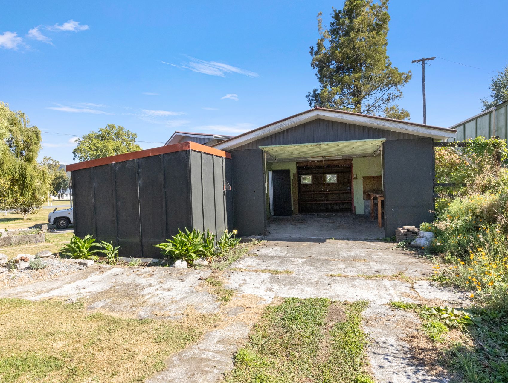 Outside, the property continues to deliver. A large freestanding pergola sits in front of the internal-access garage, while a separate powered workshop/garage alongside the home offers great space for tools, toys, or hobbies. There is also a generous parking area suitable for a caravan or campervan.