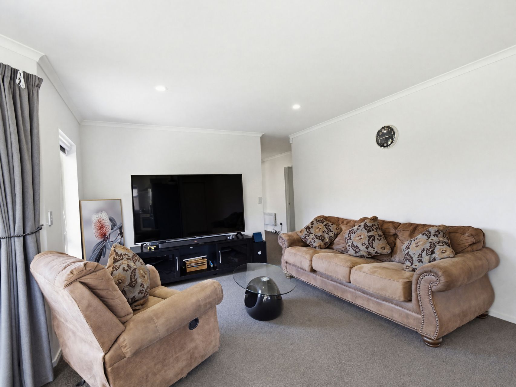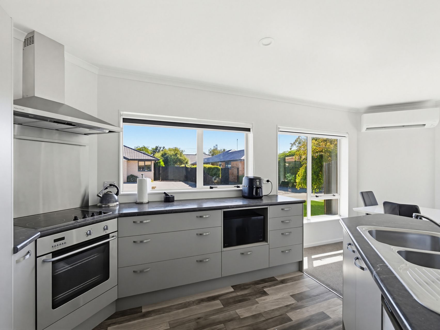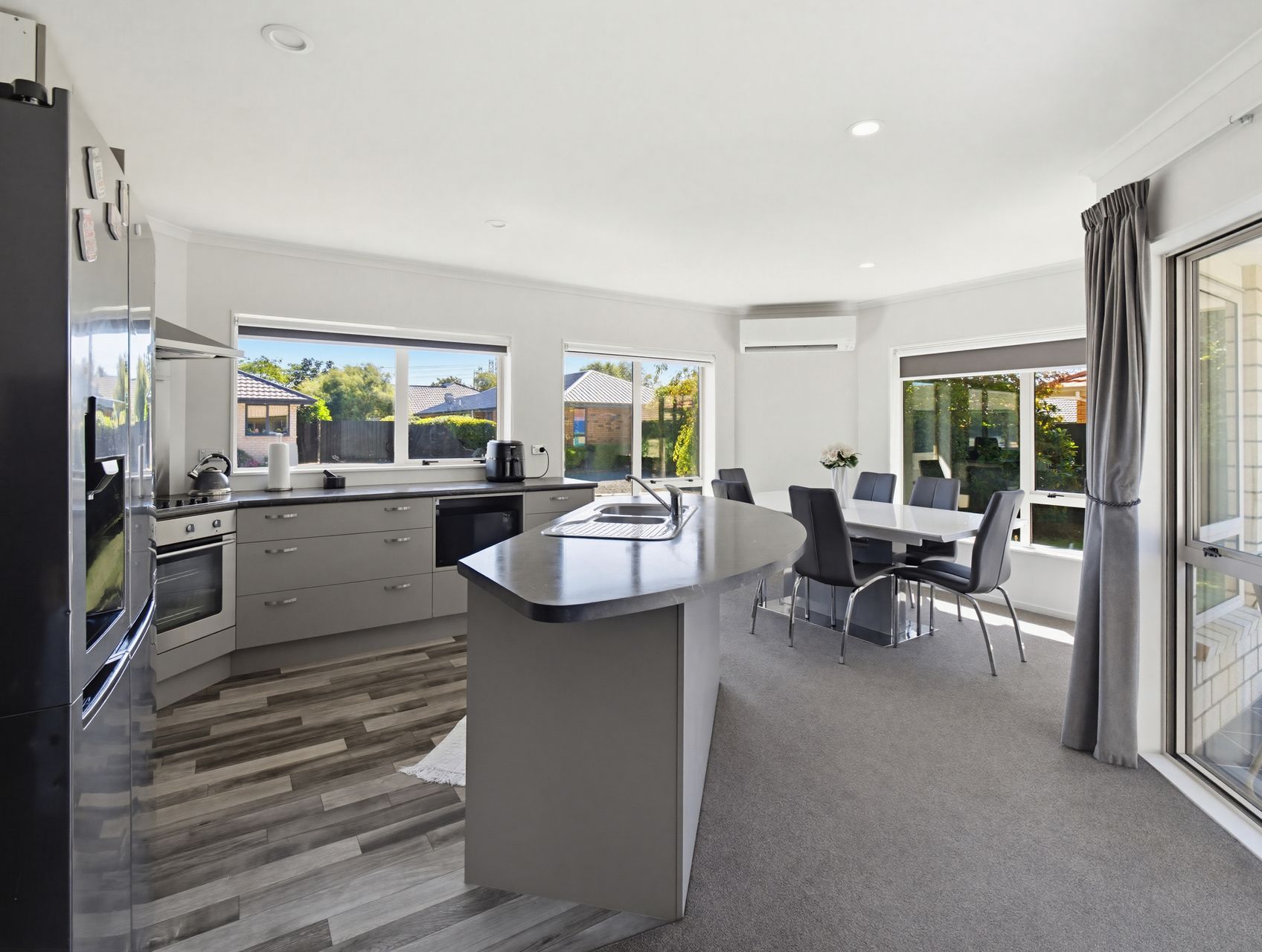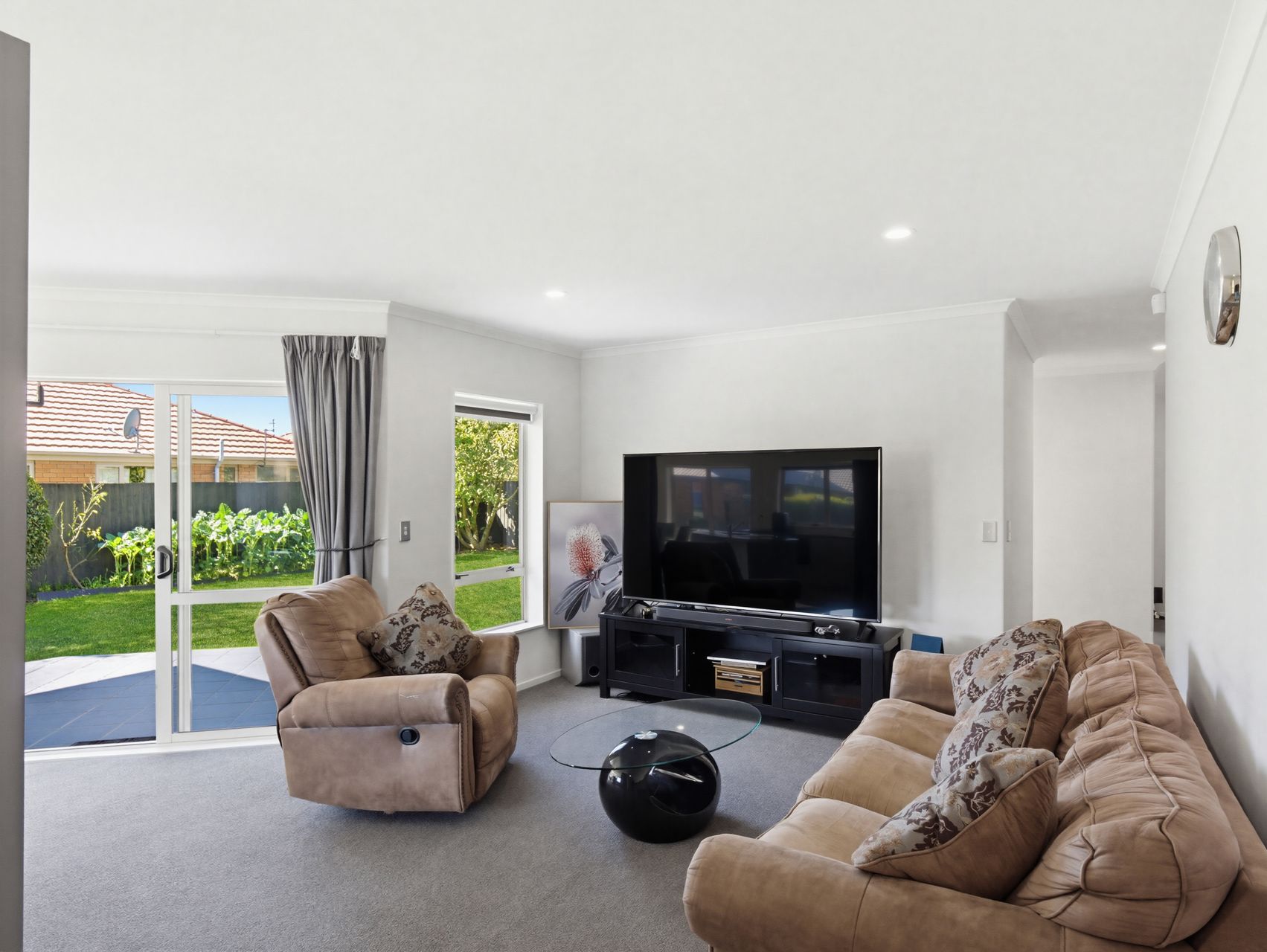 The living zone is a generous open-plan kitchen, dining and lounge area that gives you room to spread out without losing connection, while the island bench, strong storage, wide windows and heat pump make it a practical place to cook, gather and unwind. Sliding doors open straight to the patio, so dinner can move outside without any fuss and the garden stays part of daily life rather than something you only look at.