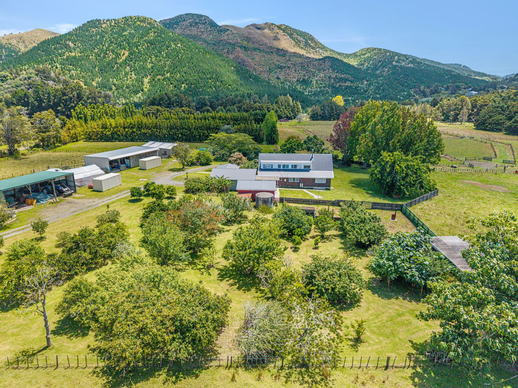 A productive garden completes the picture with fenced vegetable areas, raised beds, a powered tunnel house, and a well-established orchard. A stony creek and areas of native bush add privacy and biodiversity.
