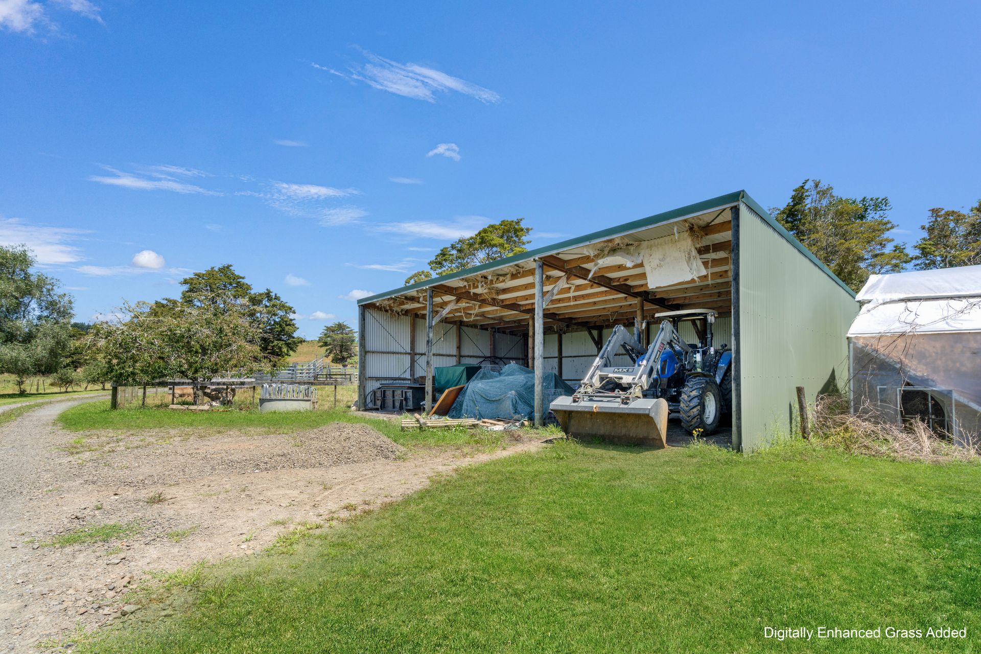 Livestock and lifestyle facilities include cattle and sheep yards, shearing facilities, calf-rearing shed, and a substantial chicken run with fenced grazing. The land is divided into multiple well-fenced paddocks, supported by quality drainage and septic irrigation.