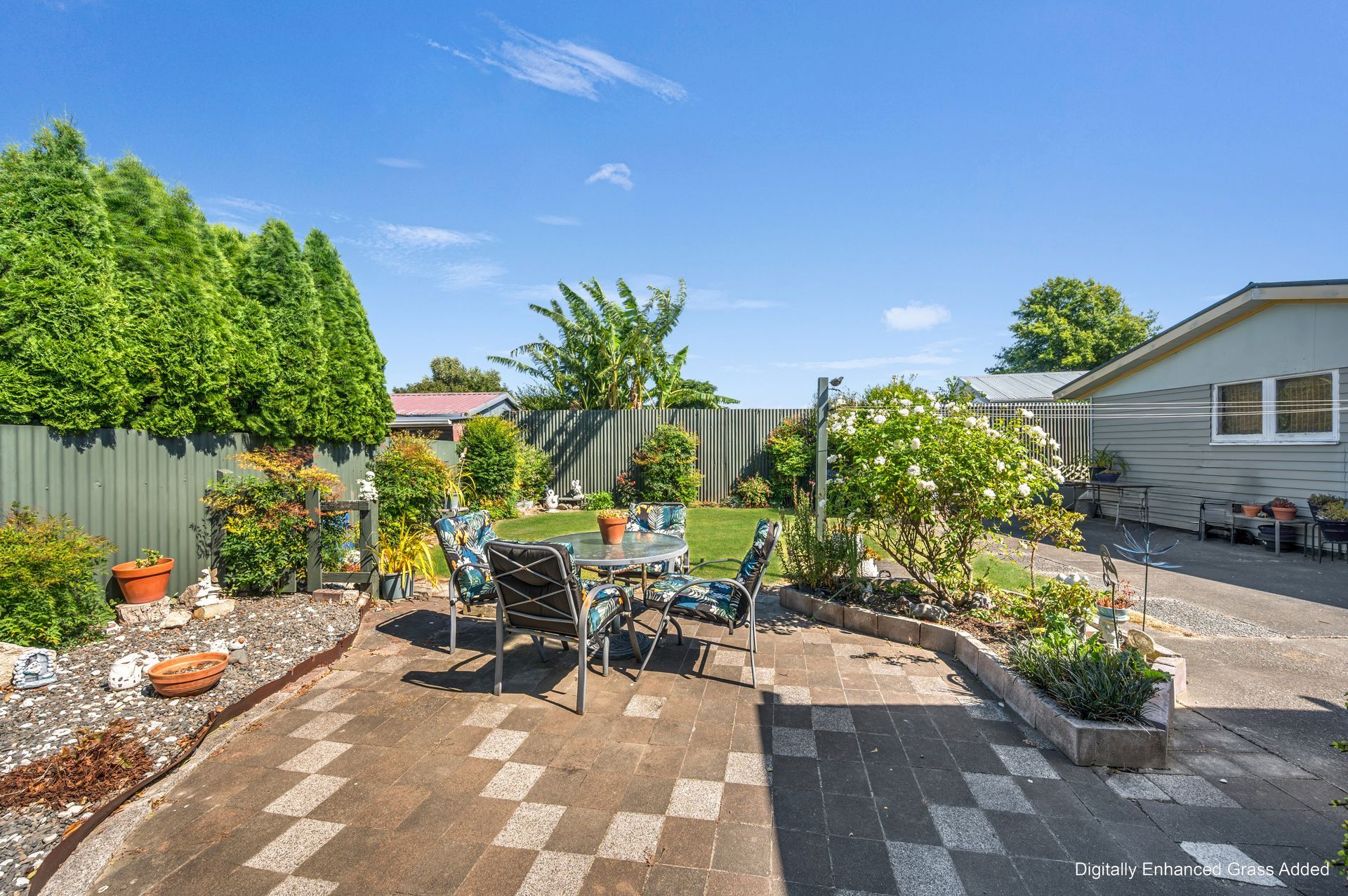 Out back, the covered entertaining area overlooks the established garden, where mature plantings create a private, peaceful setting. There’s plenty of room to enjoy outdoor living, potter in the garden, or simply unwind. The garage offers secure parking plus valuable storage space.