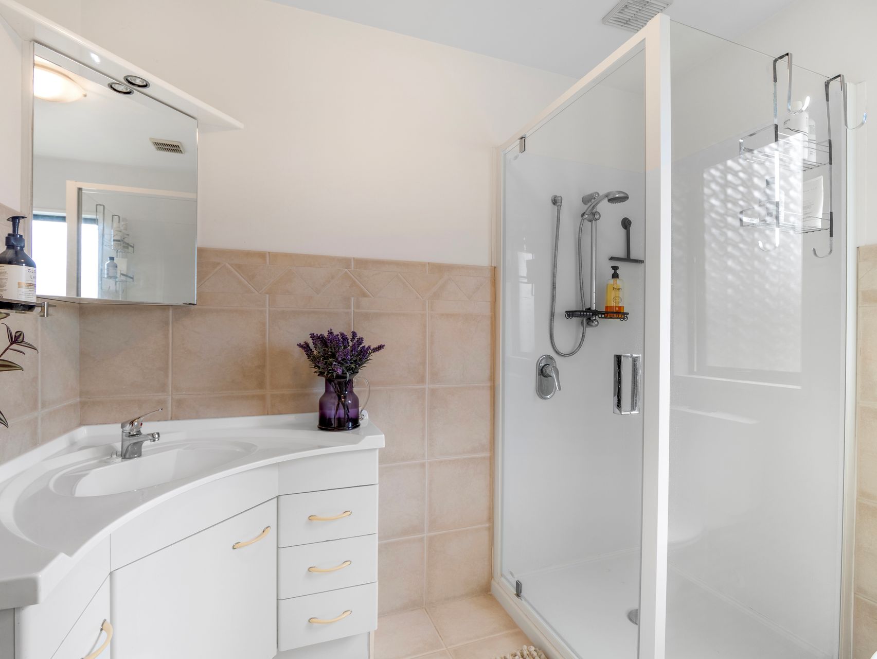 Accommodation comprises four generous double bedrooms, including a master with ensuite and direct access to its own private patio. Two bathrooms, an oversized double internal-access garage, a cosy log burner, double glazing, heat pump and heat transfer system ensures year-round comfort and practicality.