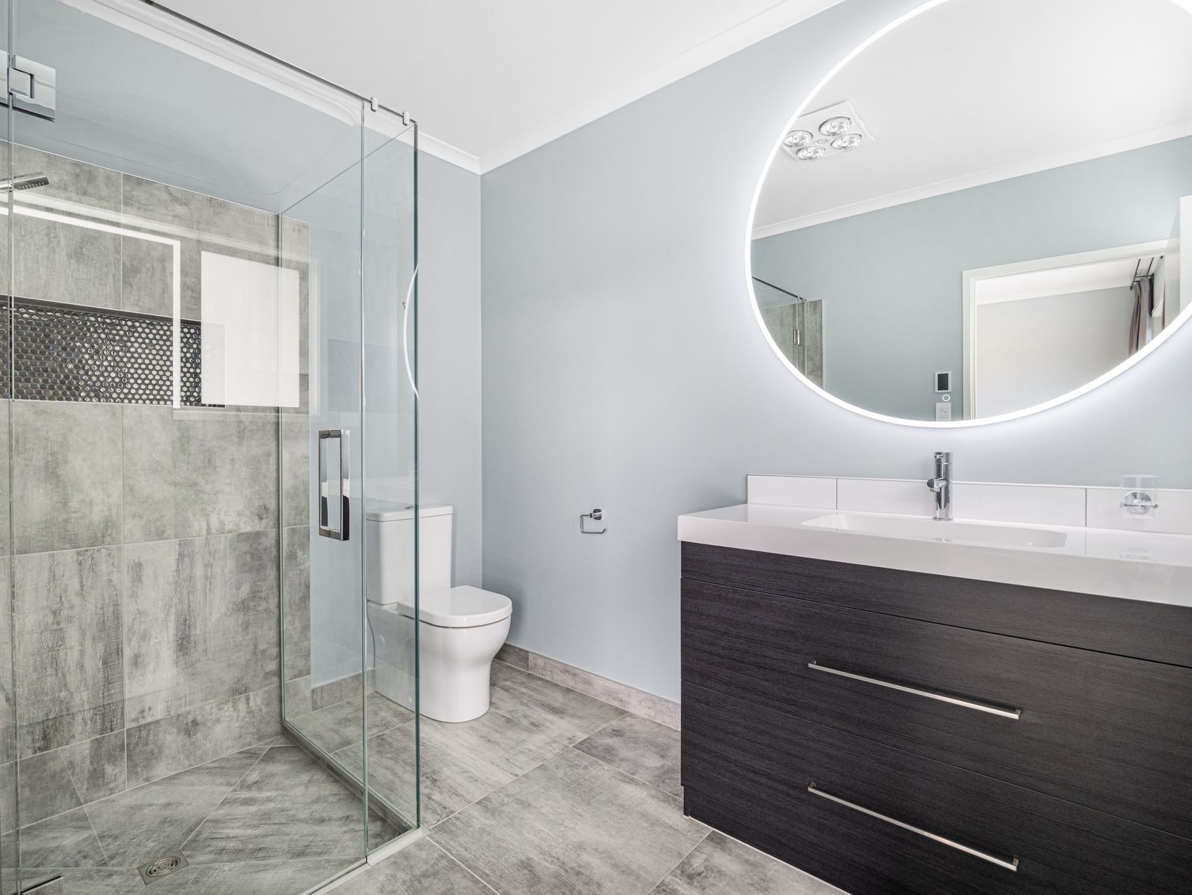 The master has a walk-in robe & stylish ensuite with underfloor heating. Two additional bedrooms with custom wardrobes share a well-appointed family bathroom complete with a standalone bath. Throughout, soundproofed internal walls, double glazing, LED lighting & full insulation speak to the home’s attention to detail. The carpeted double garage houses a built-in laundry, while a fully fitted loft above offers generous storage.