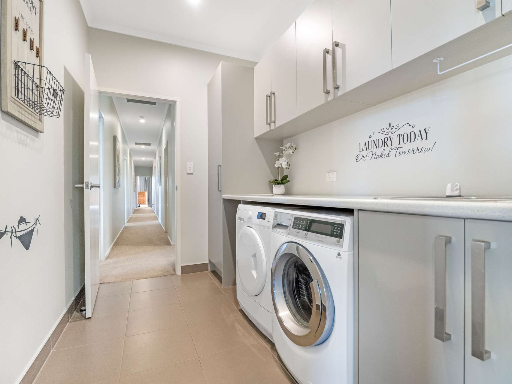 The generous media room features an elevated platform for theatre-style seating and is ideal for movie marathons or game-day viewing. The 3 car garage is carpeted to provide a flexi-use space that’s currently used as a games and fitness zone and a dedicated laundry room rounds out the practical features but there’s much more.